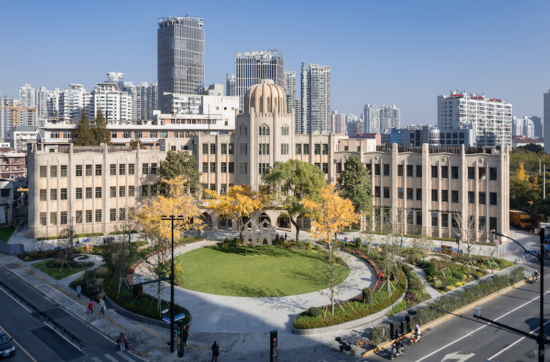 雷士德工学院建于1934年,由德和洋行设计,曾是土木工程类私立大学,用雷士德基金会部分基金建造。主楼中央耸起半圆形的穹顶,两翼沿东西方向徐徐展开,兼具英国哥特复兴风格和装饰艺术派风格,是上海近代多元建筑风格的重要组成部分。