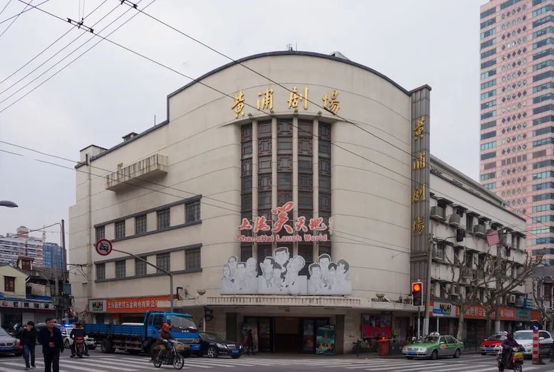 黄浦剧场前身为金城大戏院,位于上海北京东路780号,由华盖建筑事务所设计,新恒泰营造厂承造,1933年建成,1934年2月1日正式开幕,原设1786座。1935年,《风云儿女》在此首映,《义勇军进行曲》在此传唱。1957年由周恩来题字更名“黄浦剧场”,建筑采用钢筋混凝土结构,高四层,入口位于街道转角处。立面简洁,墙体主要为浅色粉刷,两翼开窗,窗上下有深色水平装饰线脚拉通。建筑整体呈现代派风格。
