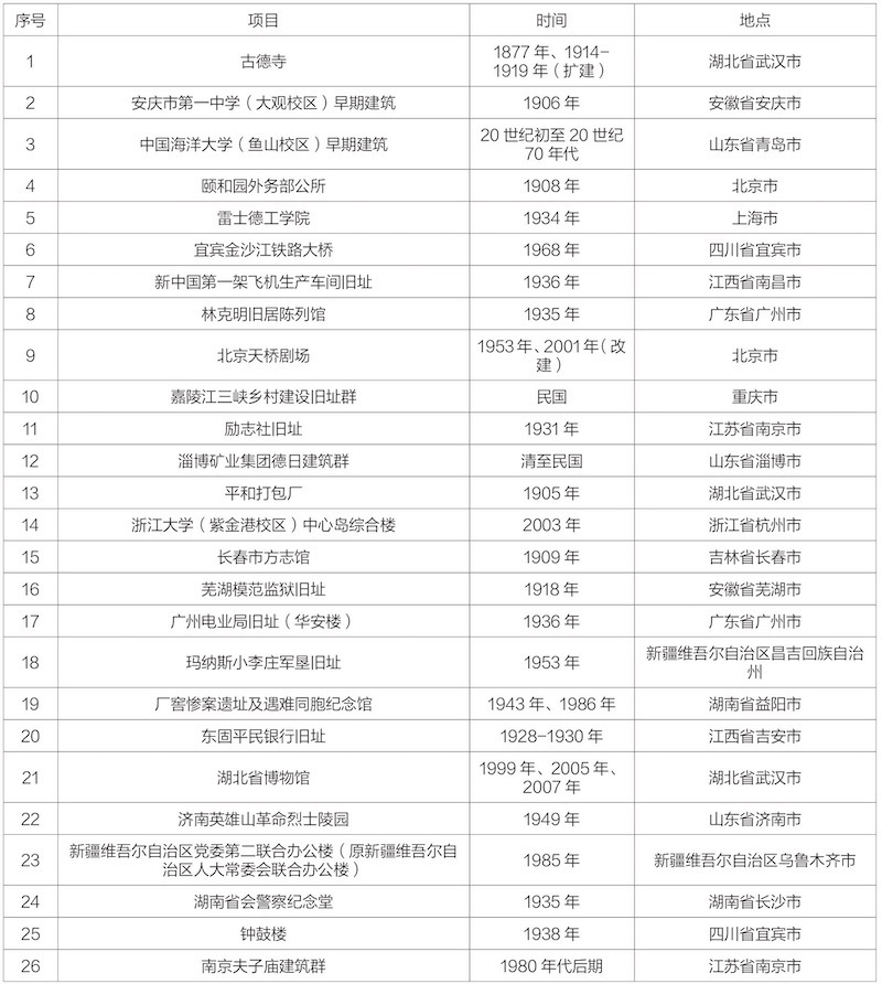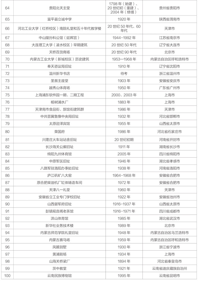 附:第十批20世纪建筑遗产项目名录