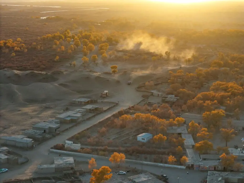 ↑这是2024年11月5日拍摄的新疆于田县达里雅布依旧址景区一角(无人机照片)。新华社记者 胡虎虎 摄
