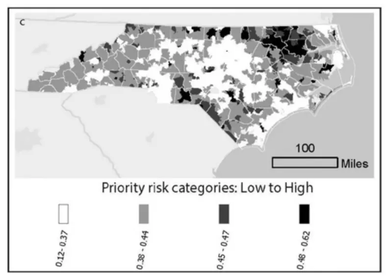 北卡罗来纳州儿童铅暴露风险示意图