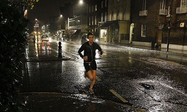 跑者在梅雨季进行户外训练,要做好遇到大雨的准备,切记不要因为训练而生病。