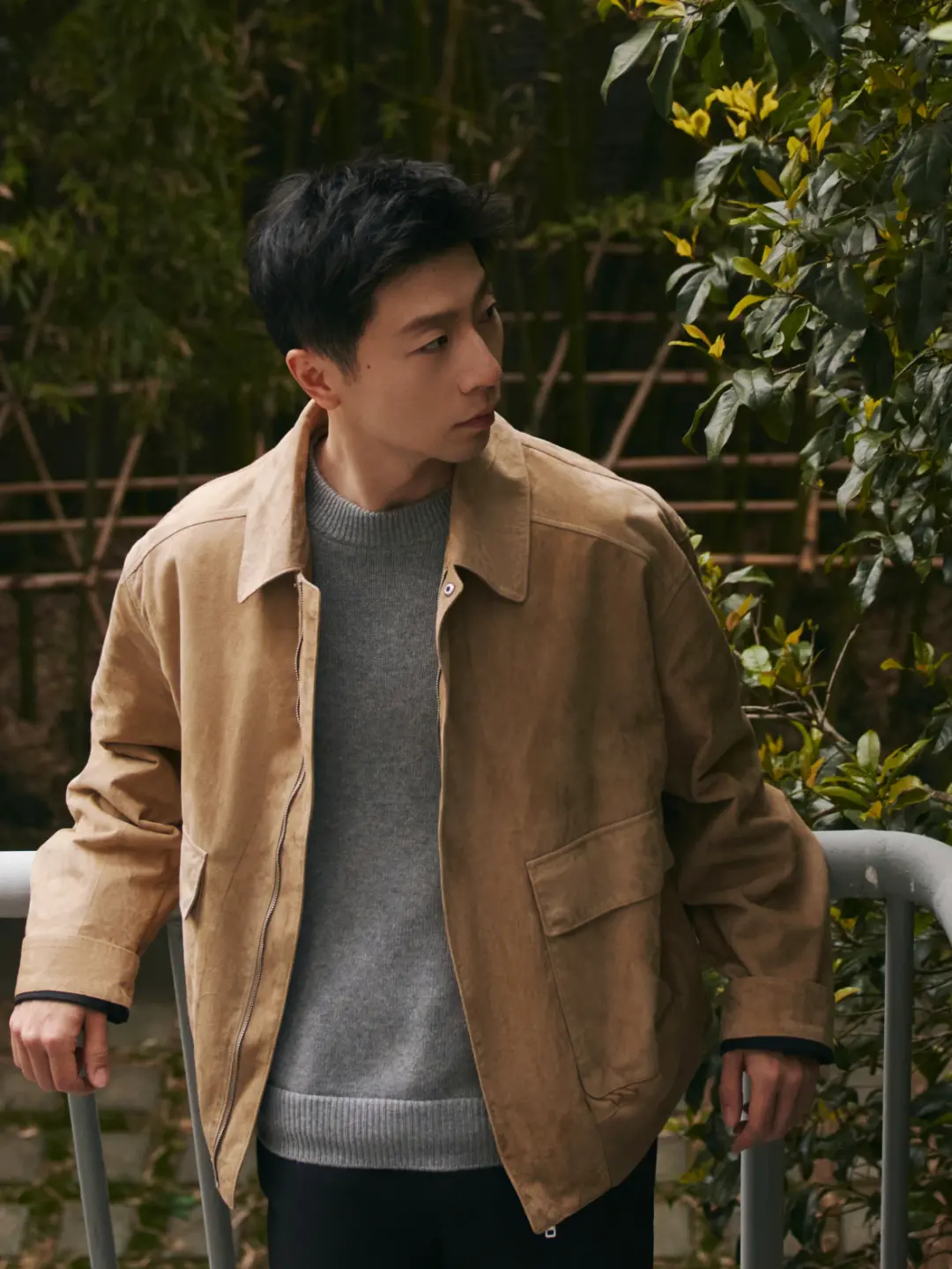 3月一身卡其色麂皮夹克与灰色针织衫的造型出席上海Prada荣宅餐饮空间开幕活动,无论赛场还是秀场目光都很难移开呀~
