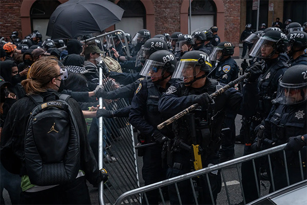 抗议者和警方在旧金山ICE设施附近发射冲突 《纽约时报》