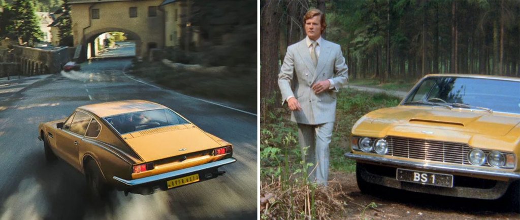阿斯顿·马丁是电影里邦德长期以来的专属座驾。《无暇赴死》中,邦德曾开着一辆棕绿色的DBS古董车赶赴挪威营救玛德琳·斯旺和女儿,这款车之前曾在乔治·拉赞贝主演的《女王密使》(1969年)和提摩西·道尔顿主演的《黎明生机》中出现过。新款游戏里,青年邦德同样驾驶这款车型上演追车大戏,只不过车漆是黄色的,令人联想到第三任邦德饰演者罗杰·摩尔在1971年的英剧《纨绔双侠》(The Persuaders!)中的场景。