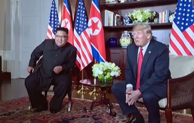特朗普第一任期时,与金正恩举行会谈 视频截图