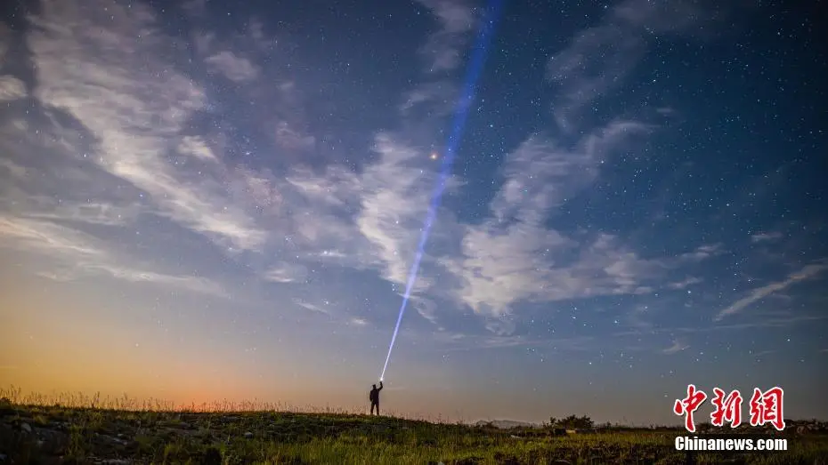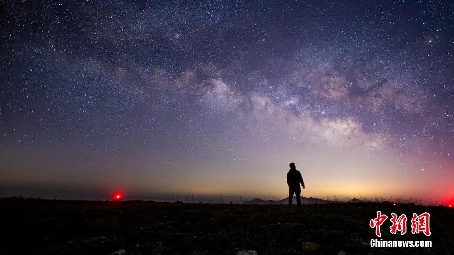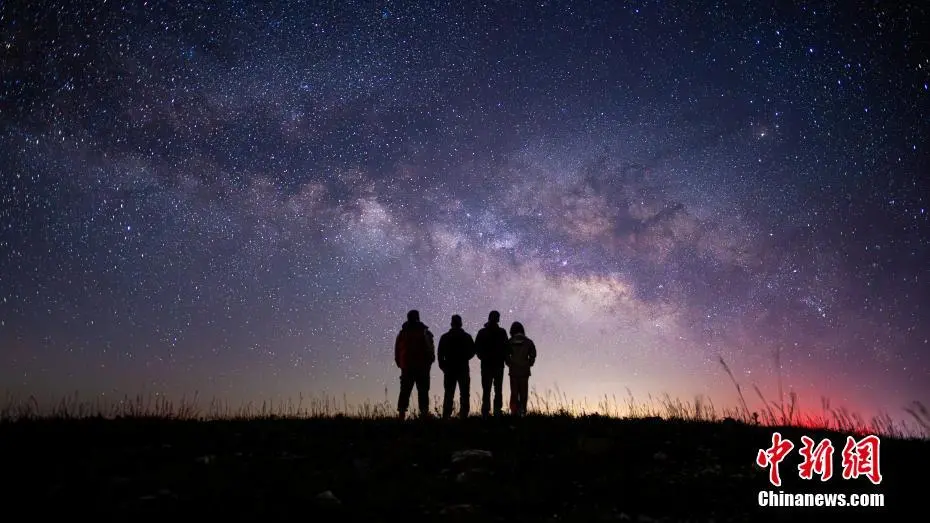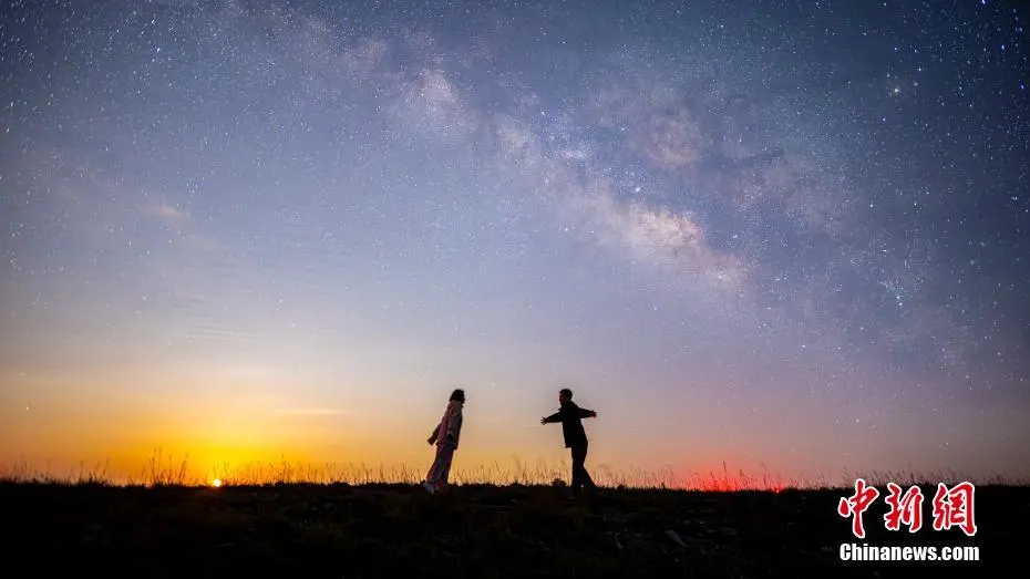 仲夏时节,湖北神农架林区天气晴朗通透。夜空中,银河如幔清晰可见,星斗闪耀璀璨夺目,吸引户外露营和星空摄影爱好者拍照打卡。神农架地处湖北西部,森林覆盖率超过91%,全年空气质量优良率保持在96%以上,享有“华中之肺”“中国天然氧吧”的美誉。图为游客在神农架欣赏浩瀚星河。李开宇 摄