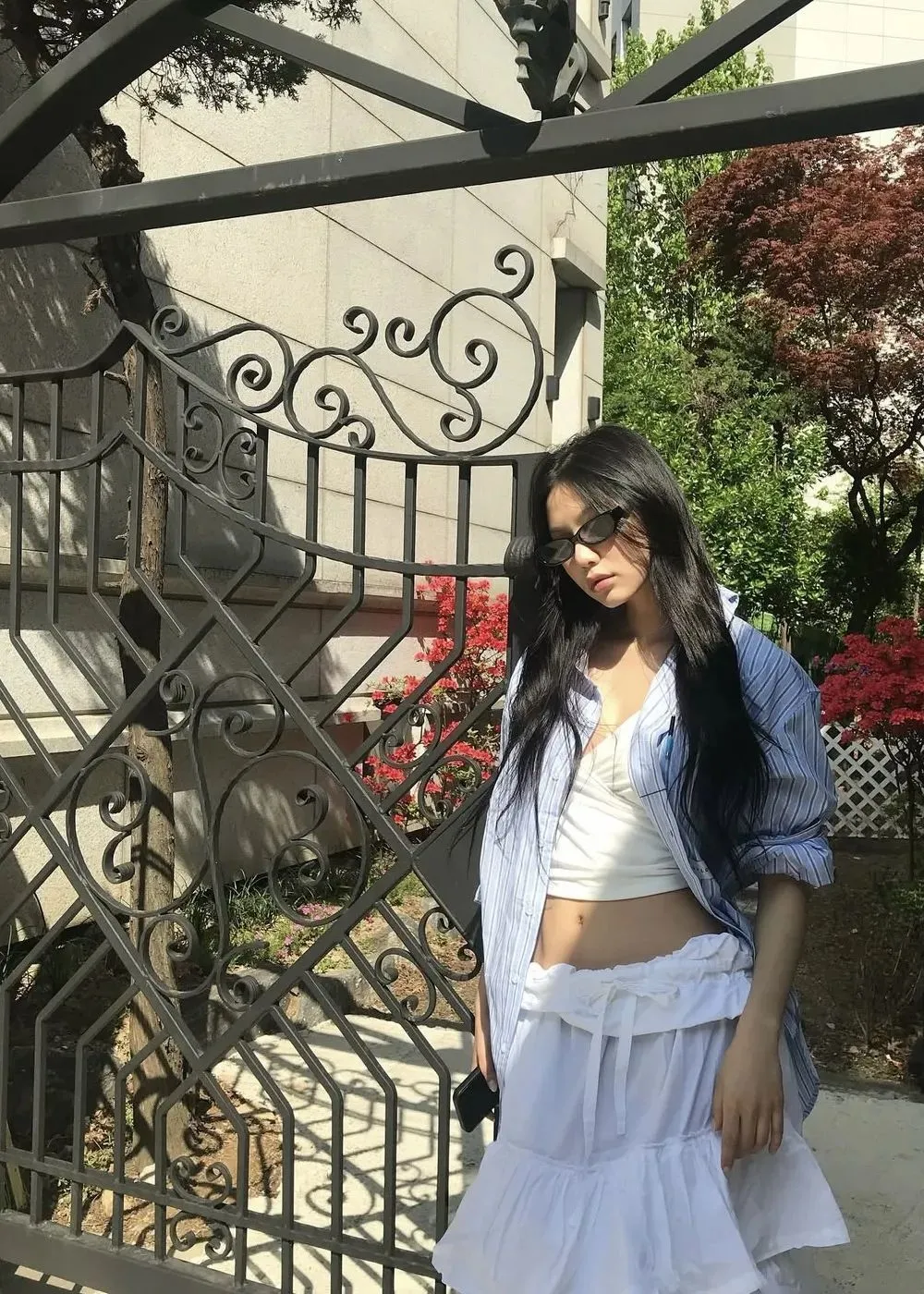 此外,百褶短裙也是打造“学院T”风格的必备单品,如果怕热又想穿出潮流感,百褶短裙便是答案,车静媛前段时间去上海旅游时,便是用一条百褶裙搞定旅行ootd,实穿性非常强。