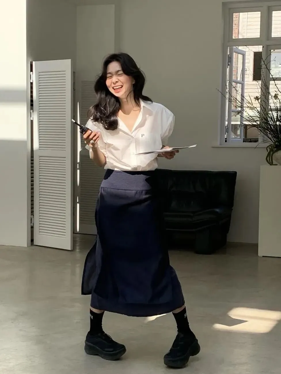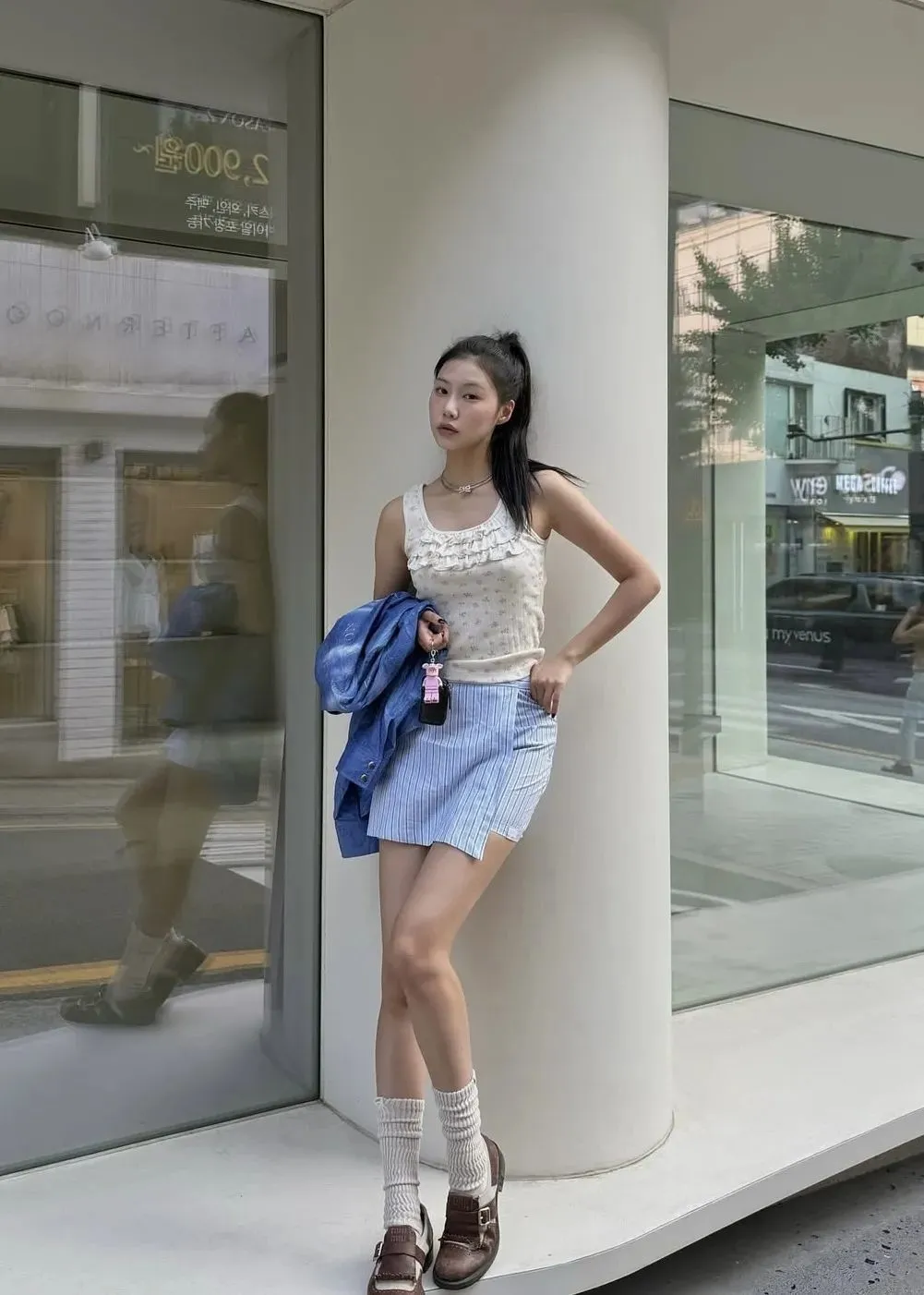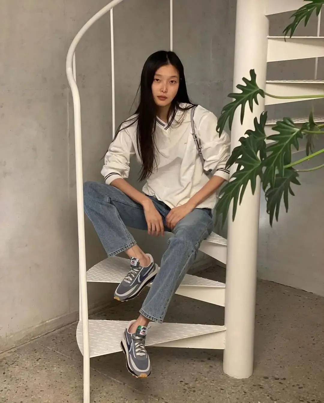 模特郑夏荣常常pick的款式就是如此,哪怕再简单,都散发着慵懒时髦的腔调,让造型彻底脱离“学生装”的稚气,轻松展现出松弛随性的一面。