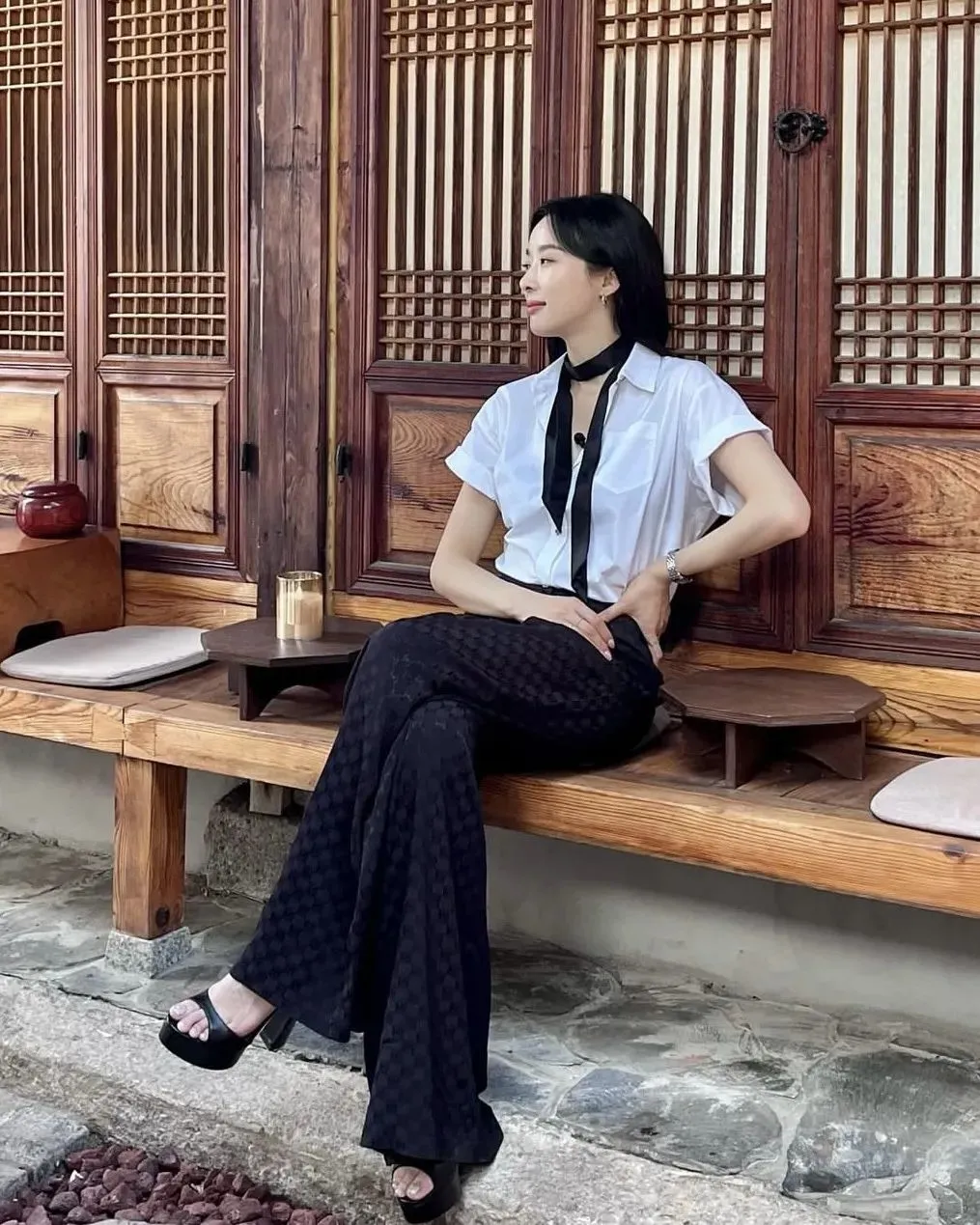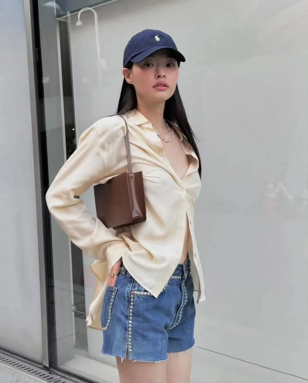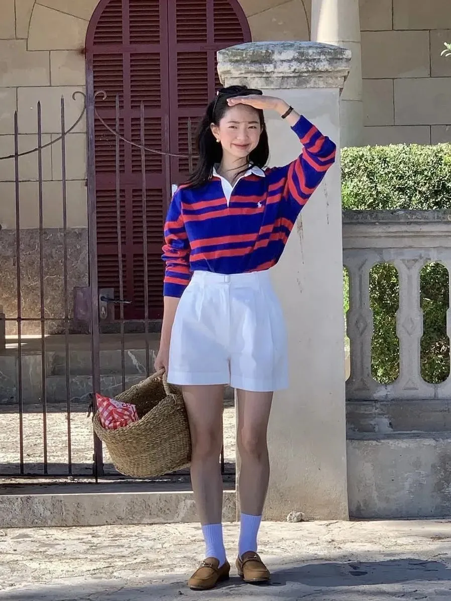 极具老钱气质的Ralph Lauren白衬衫也值得入手一拨,像郑秀晶这样搭百慕大短裤,配条宽皮带便能打造随性不羁的洒脱气质,搭配精巧配饰更是吸睛。