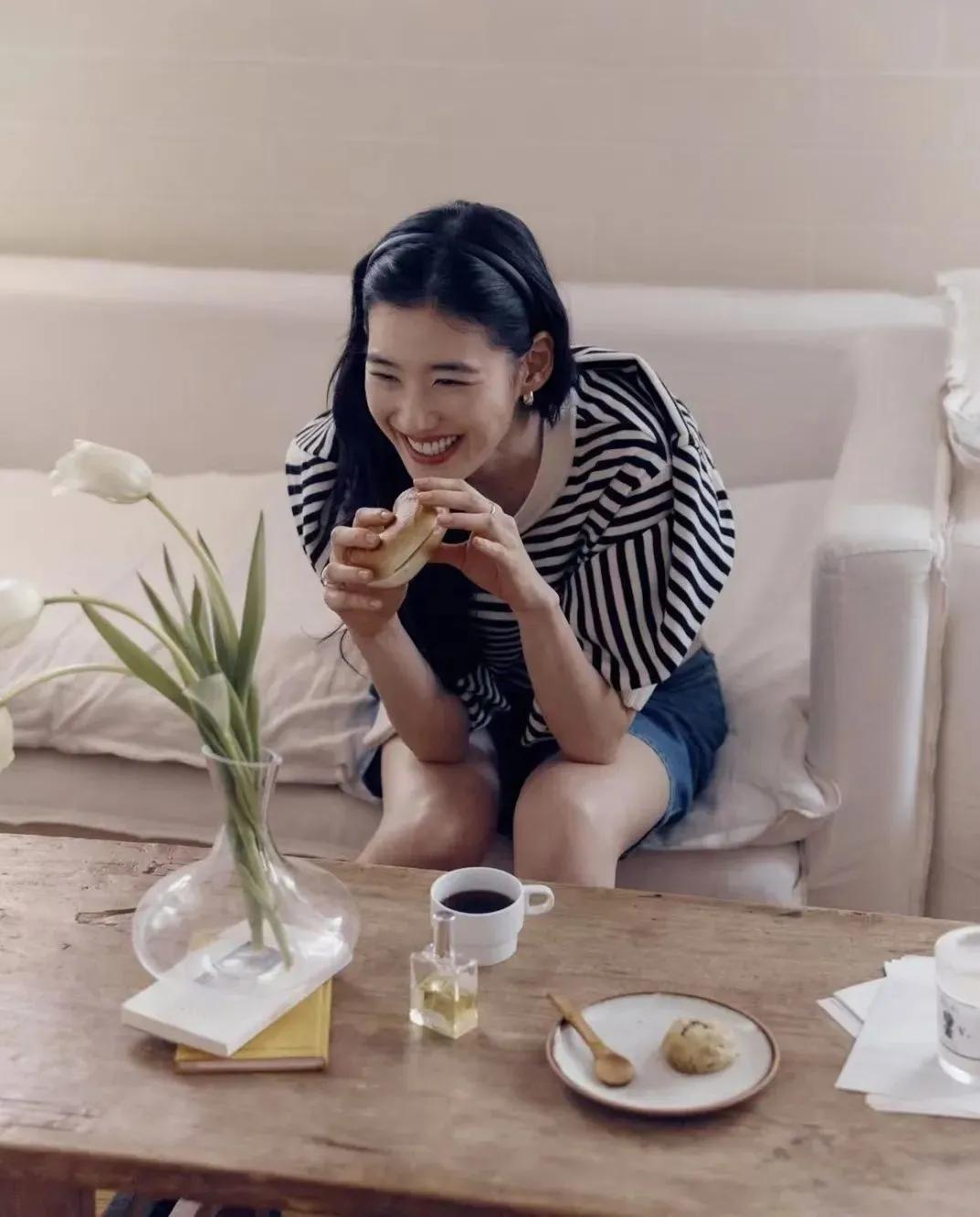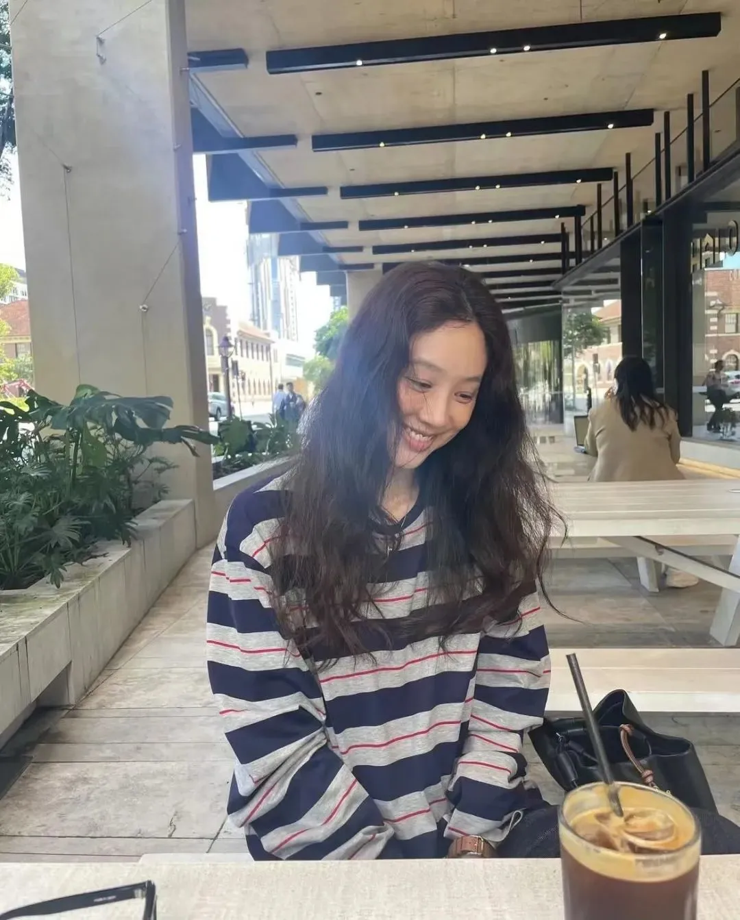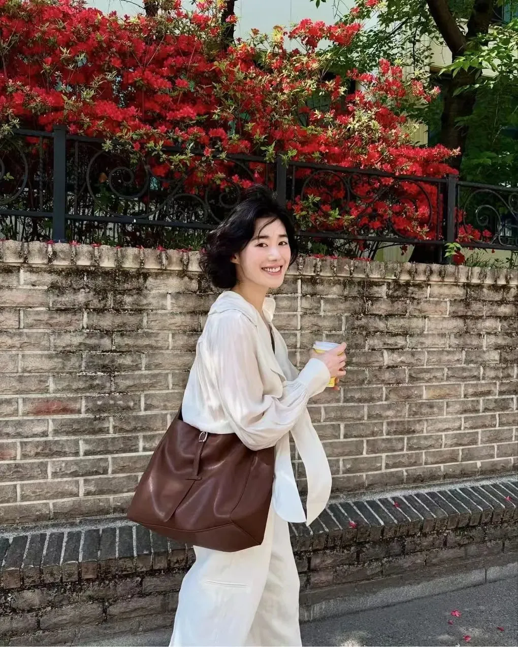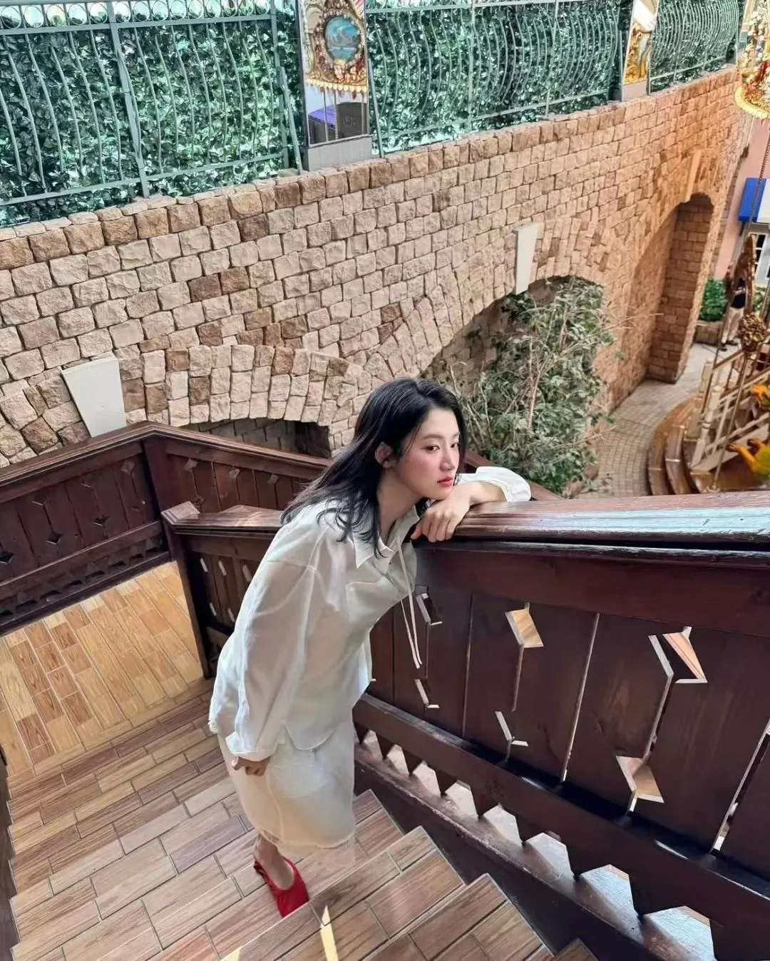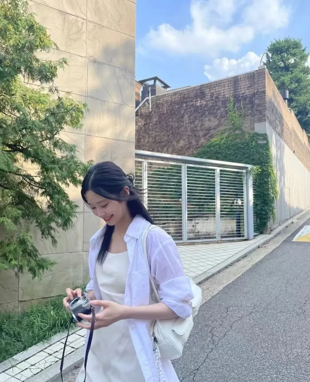 和金智媛一样,另一位氛围美人郑丽媛的出游照,则是为“岁月不败美人”这句话带来了更贴切的注解,她身上似乎从来都没有精修的紧绷感,也没有硬凹的少女态。
