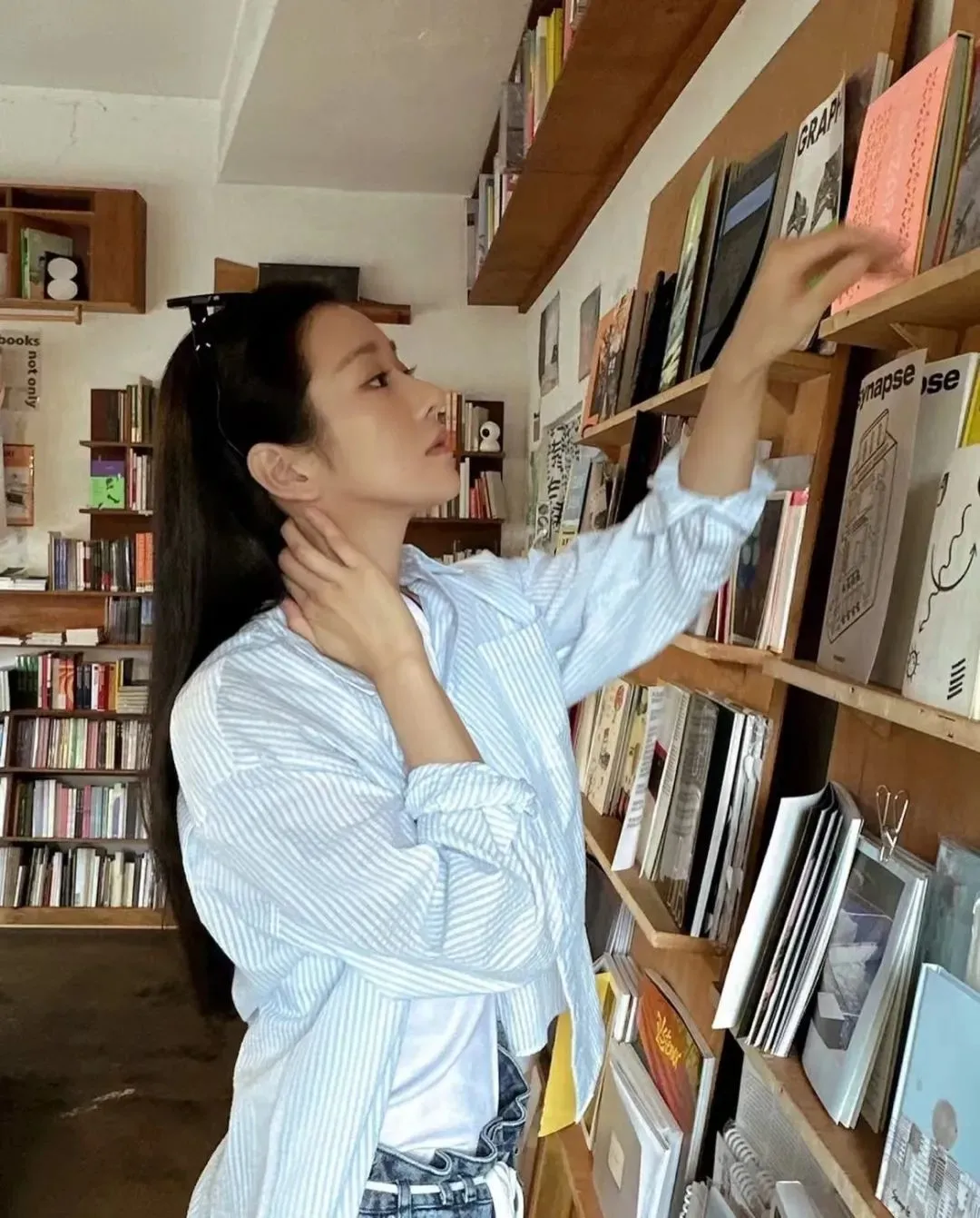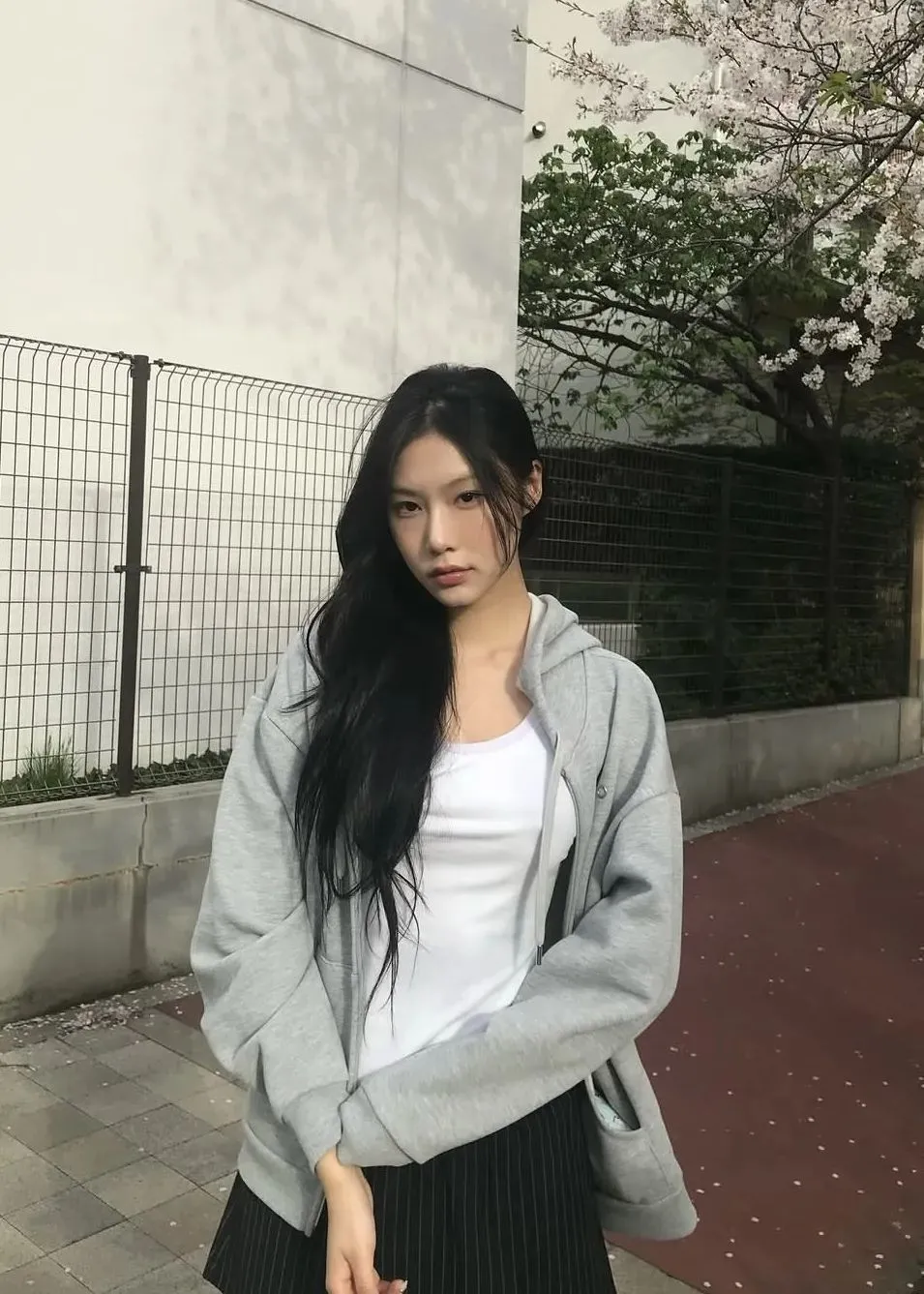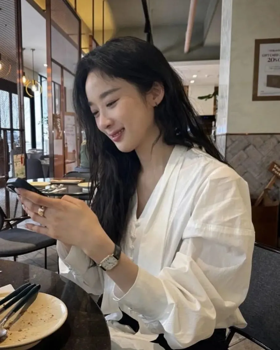 学院风格的宽松卫衣、棉质T恤、衬衫,几乎成了金智媛私服标配,这种松弛的状态,反而是用日常的基础款打造毫不费力的时髦感。