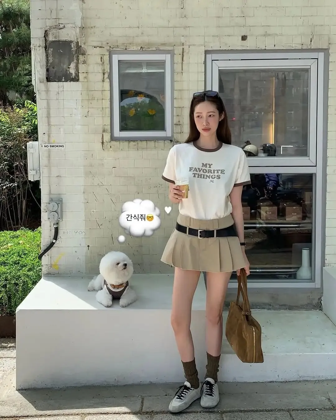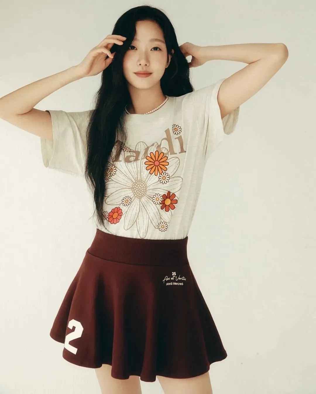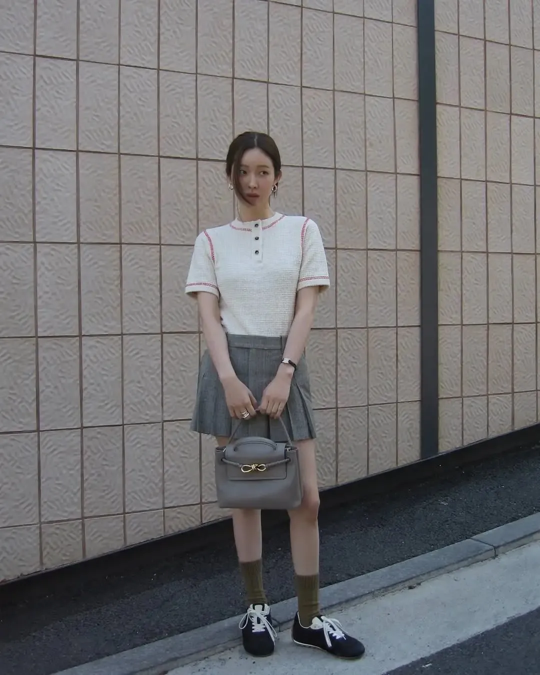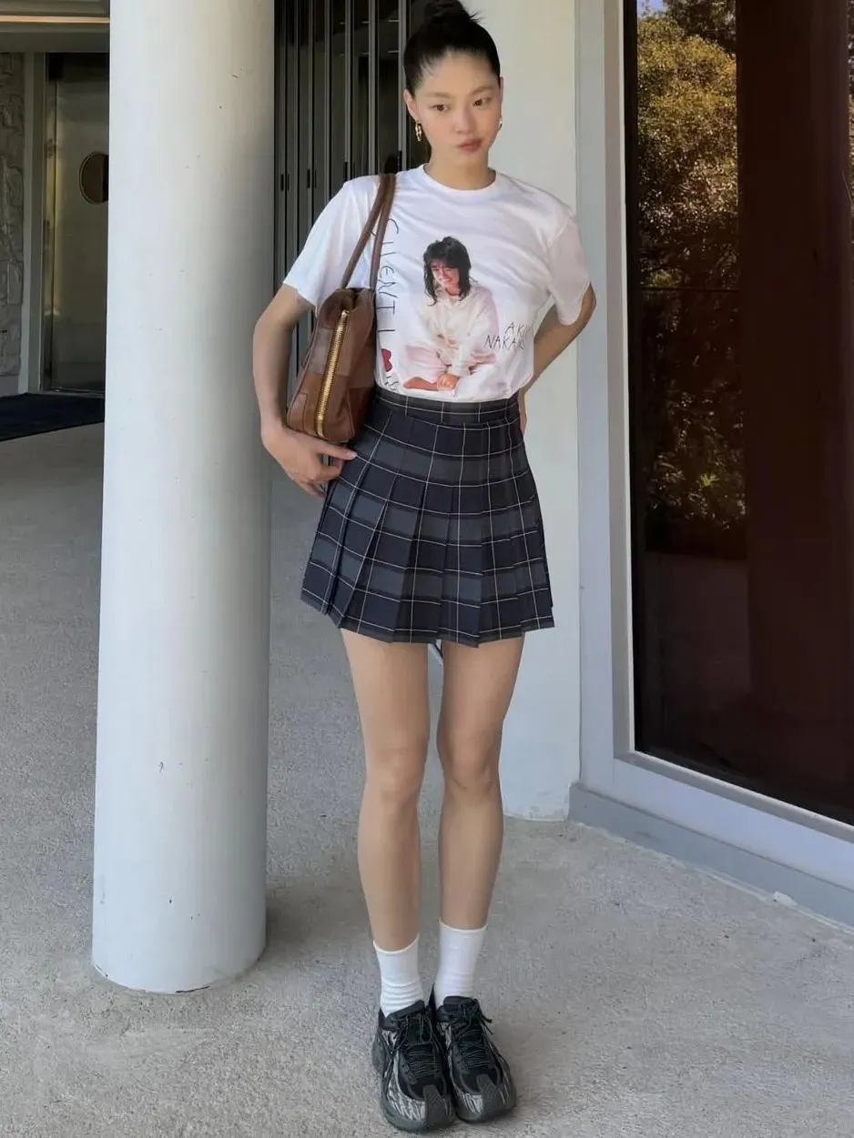 作为百褶裙的忠实爱好者,车静媛的日常穿搭更是少不了这款单品,不管是搭配T恤还是卫衣Polo衫,都能瞬间平衡学院风格与都市摩登感。