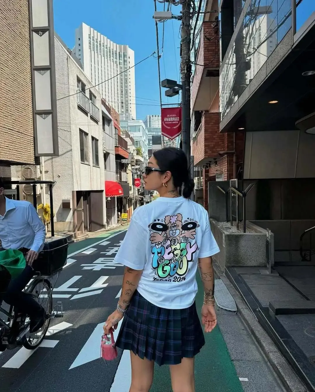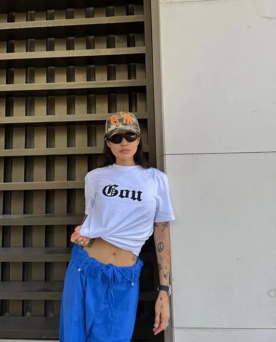 T恤分为两种,字母款与印花款,像Peggy Gou自己的品牌PEGGY GOODS就推出了多款适合夏日穿着的T恤单品。