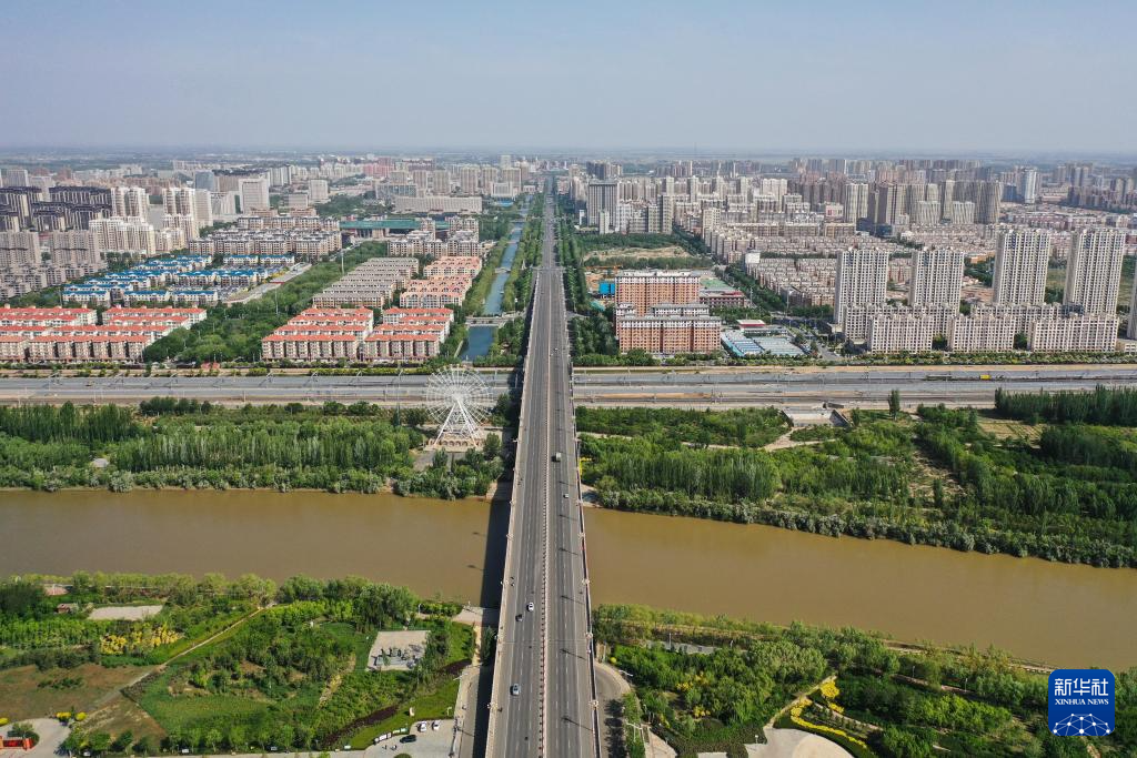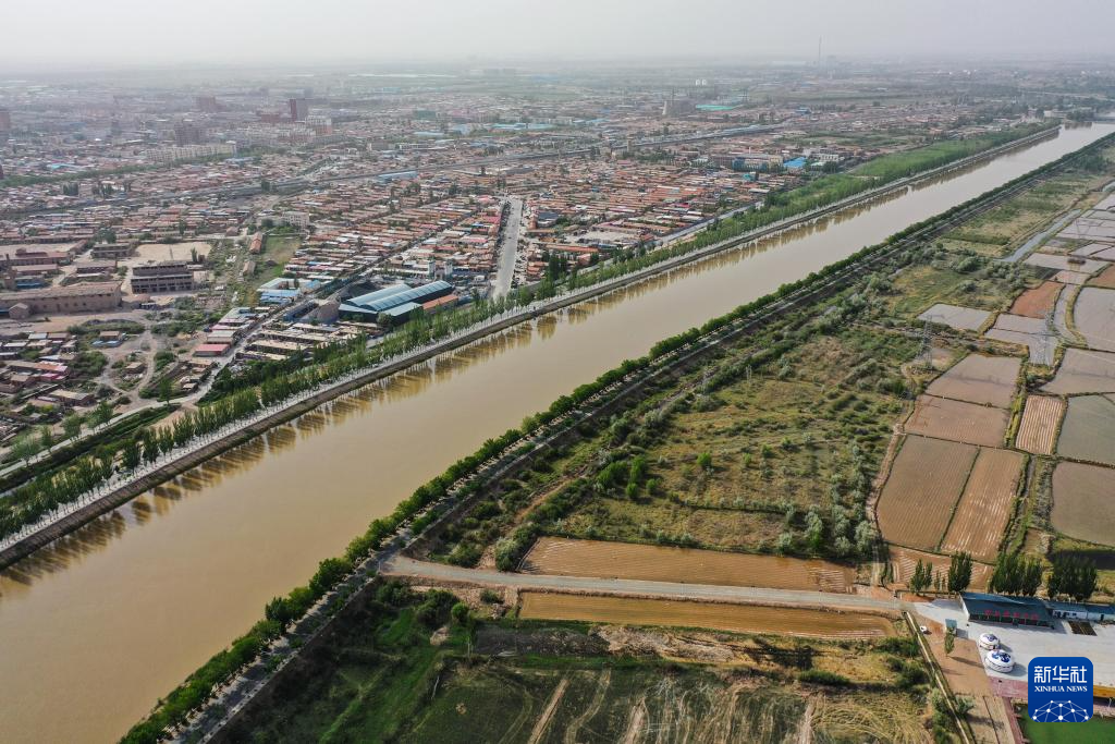 这是5月28日拍摄的内蒙古巴彦淖尔市临河区境内的总干渠(无人机照片)。 新华社记者 李志鹏 摄