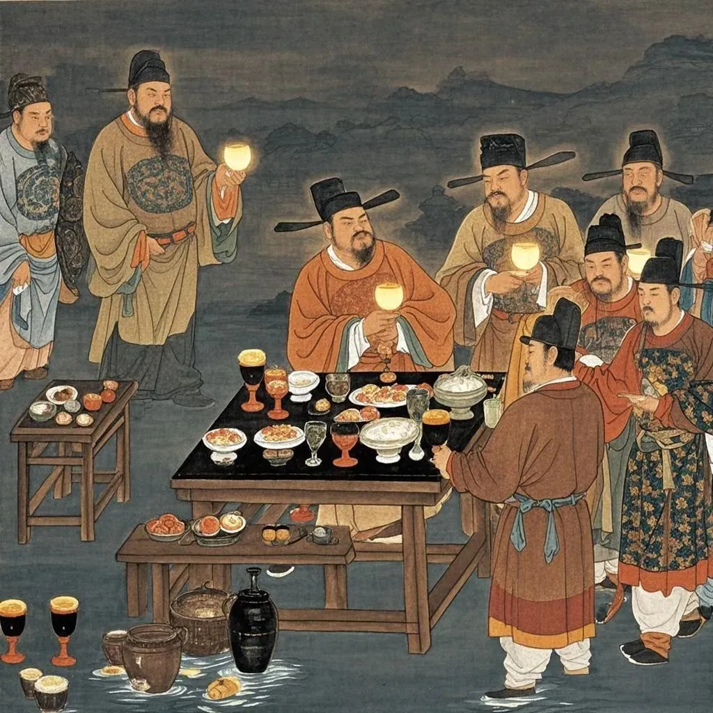 胡风美食最为突出的贡献,恐怕还是葡萄酒了!琥珀色的琼浆是丝路最浪漫的馈赠,一句“葡萄美酒夜光杯,欲饮琵琶马上催”,道尽了唐人对此杯中物的痴迷。作为超级发烧友的李世民更是从高昌(今新疆吐鲁番)引进优质马乳葡萄种在宫中,亲自指导酿造。而李白“呼儿将出换美酒”中要换的,不知是否就是葡萄酒呢?夜光杯映着摇曳烛光,葡萄酒荡漾着醉人波光,这就是盛唐气度里不可或缺的微醺风情。