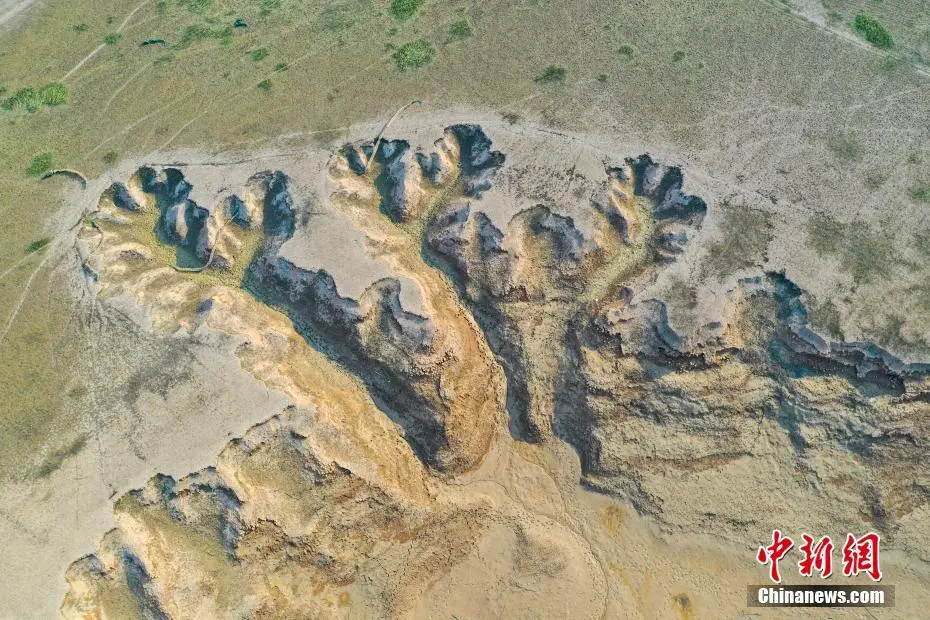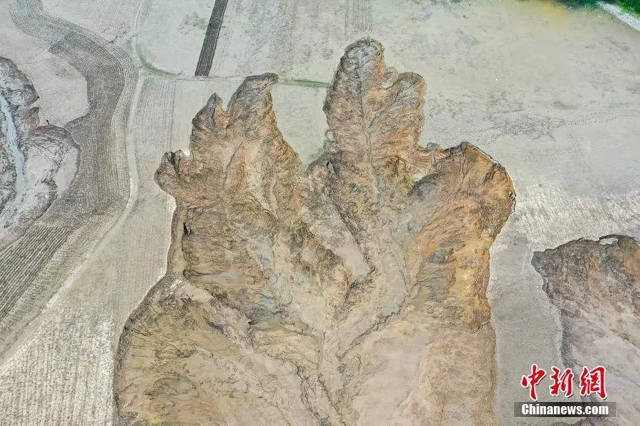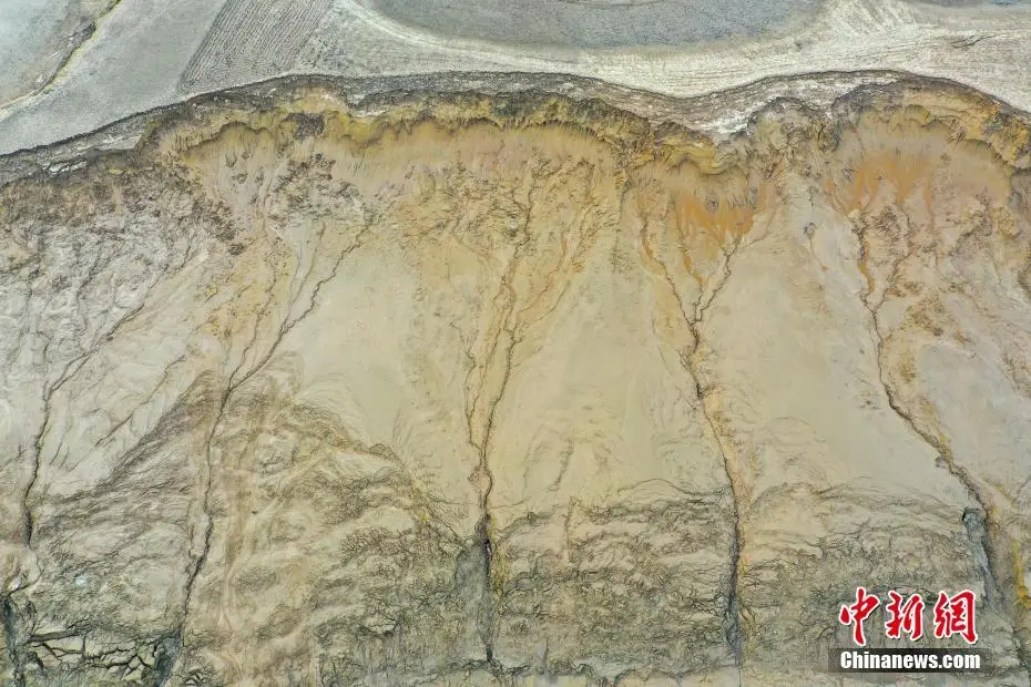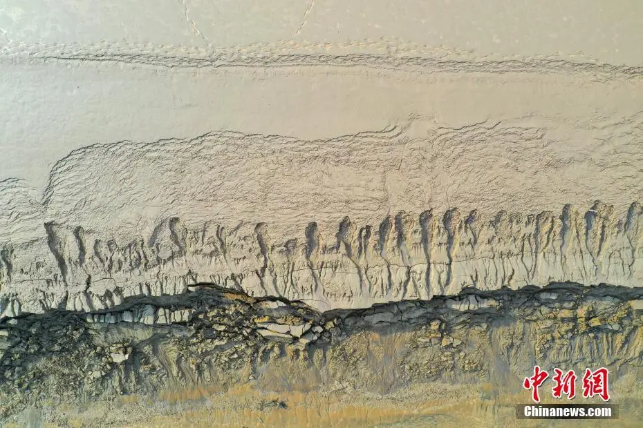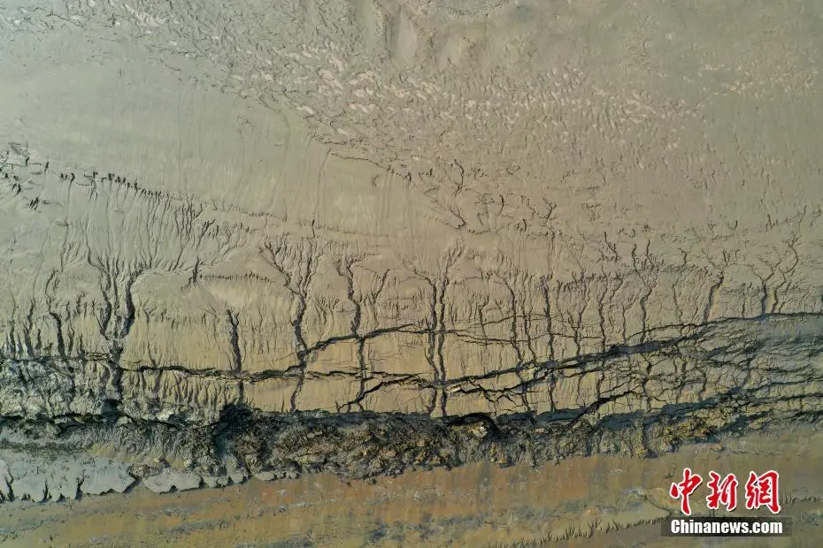 7月7日,河南三门峡,随着河南三门峡水利枢纽调水调沙的运用,库区水位下降,河床裸露,滩涂上水流冲刷留下的痕迹勾勒出一幅幅自然“沙画”,形态各异、惟妙惟肖。王建栋 摄