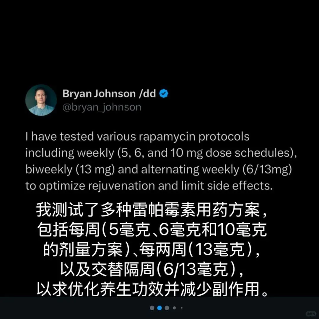 布莱恩曾长期服用雷帕霉素作为抗衰老药物,但服用五年后,并没有明显作用,副作用倒是一个没少口腔长溃疡、伤口恢复慢、胆固醇水平异常、血糖轻微升高、静息心率升高。