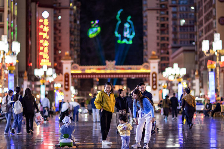 市民在昌都市茶马广场纳凉(6月21日摄)。新华社记者 姜帆 摄