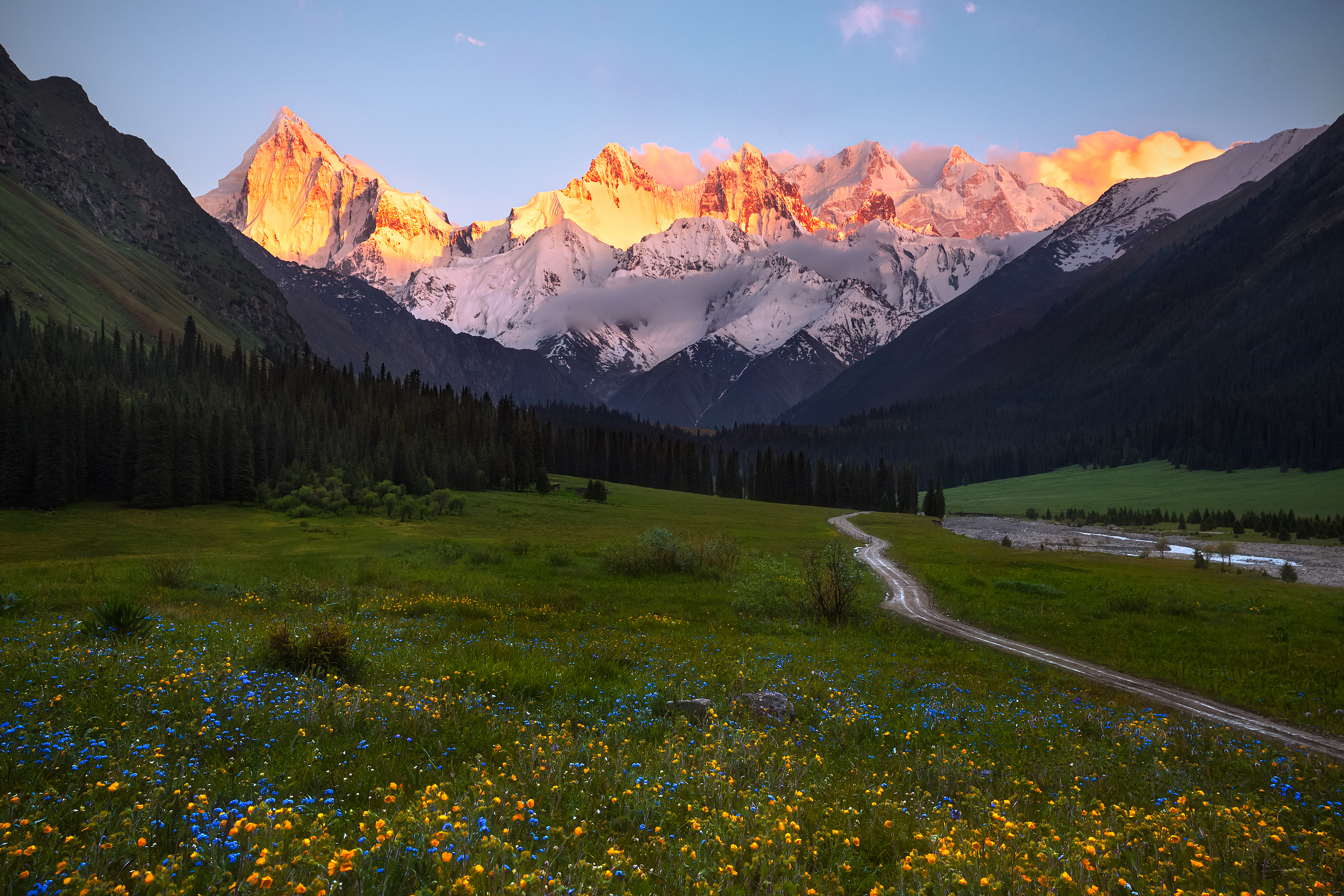 这个季节当然要去草原啦,此时的伊犁夏塔峡谷,如同是上帝打翻的调色盘,报春花、野郁金香、勿忘我铺满了溪流边的古道,远处木扎尔特冰川闪着幽蓝冷光;在雪山脚下泡着天然硫磺泉,夜晚的银河美到失真。