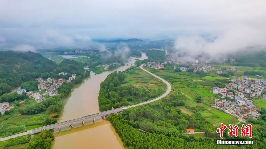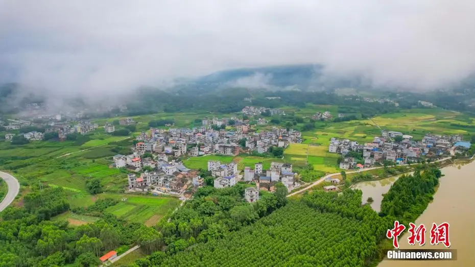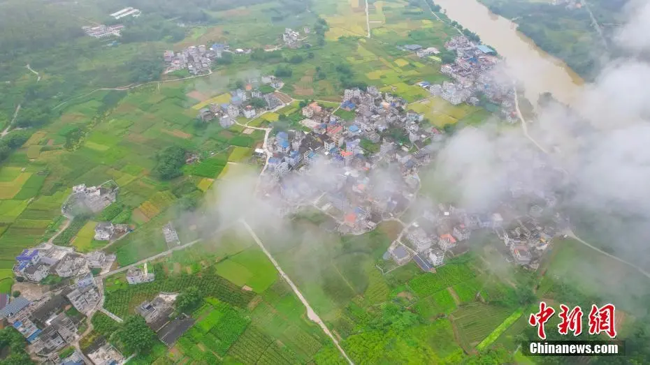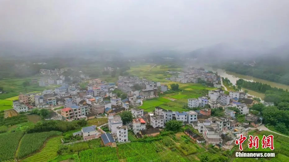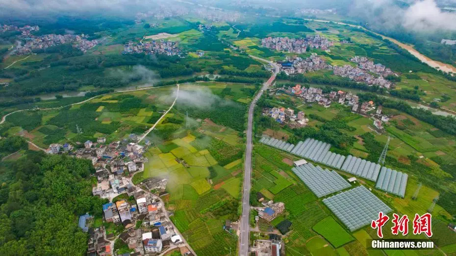7月16日,广西梧州市蒙山县西河镇水秀村,青山绿水、田园村舍与现代农业大棚相映成趣,构成一幅生态宜居的乡村画卷。近年来,蒙山县以生态宜居、乡风文明为目标,通过整治人居环境、完善基础设施、发展特色产业,打造出一批宜居宜业的和美乡村示范点。图为雨后云雾缭绕的蒙山县西河镇水秀村。周火文 摄