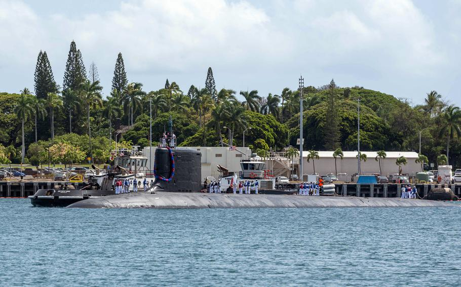 当地时间7月22日,“印第安纳”号核潜艇抵达夏威夷珍珠港-希卡姆联合基地。图源:美媒报道配图