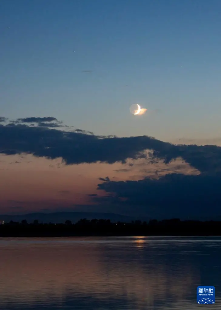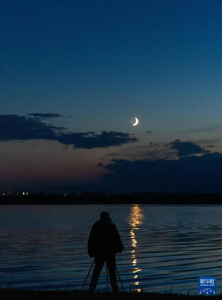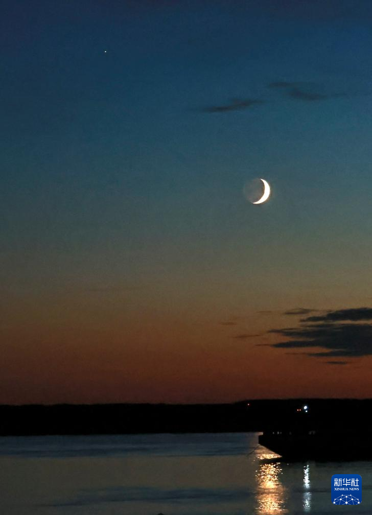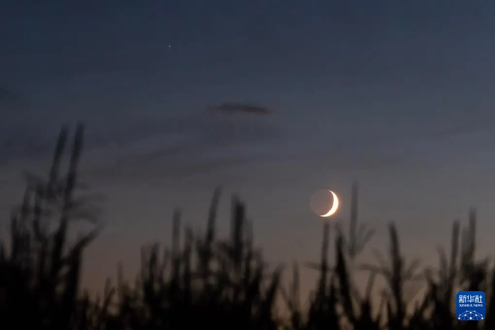 当日,夜空上演火星伴月,微微泛红的火星与一弯蛾眉月近距离相伴。