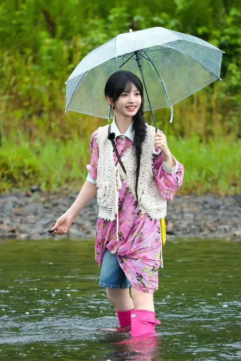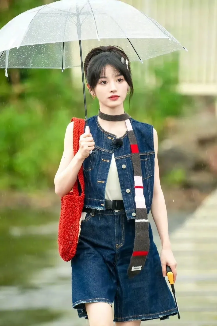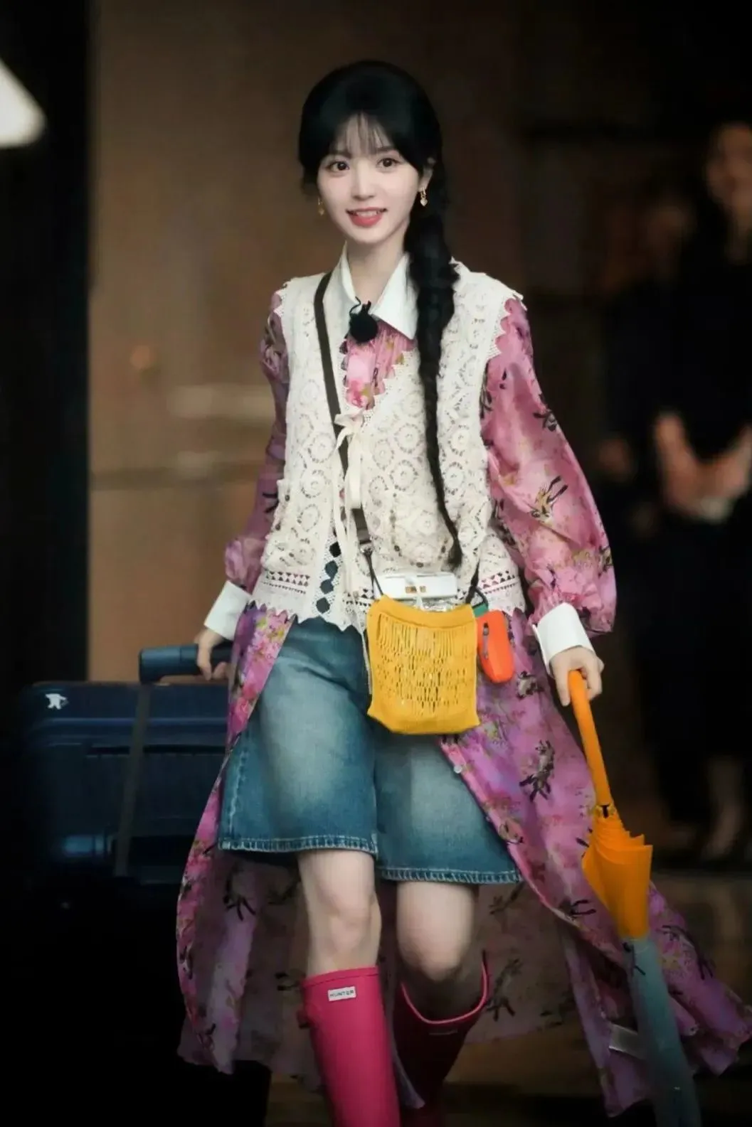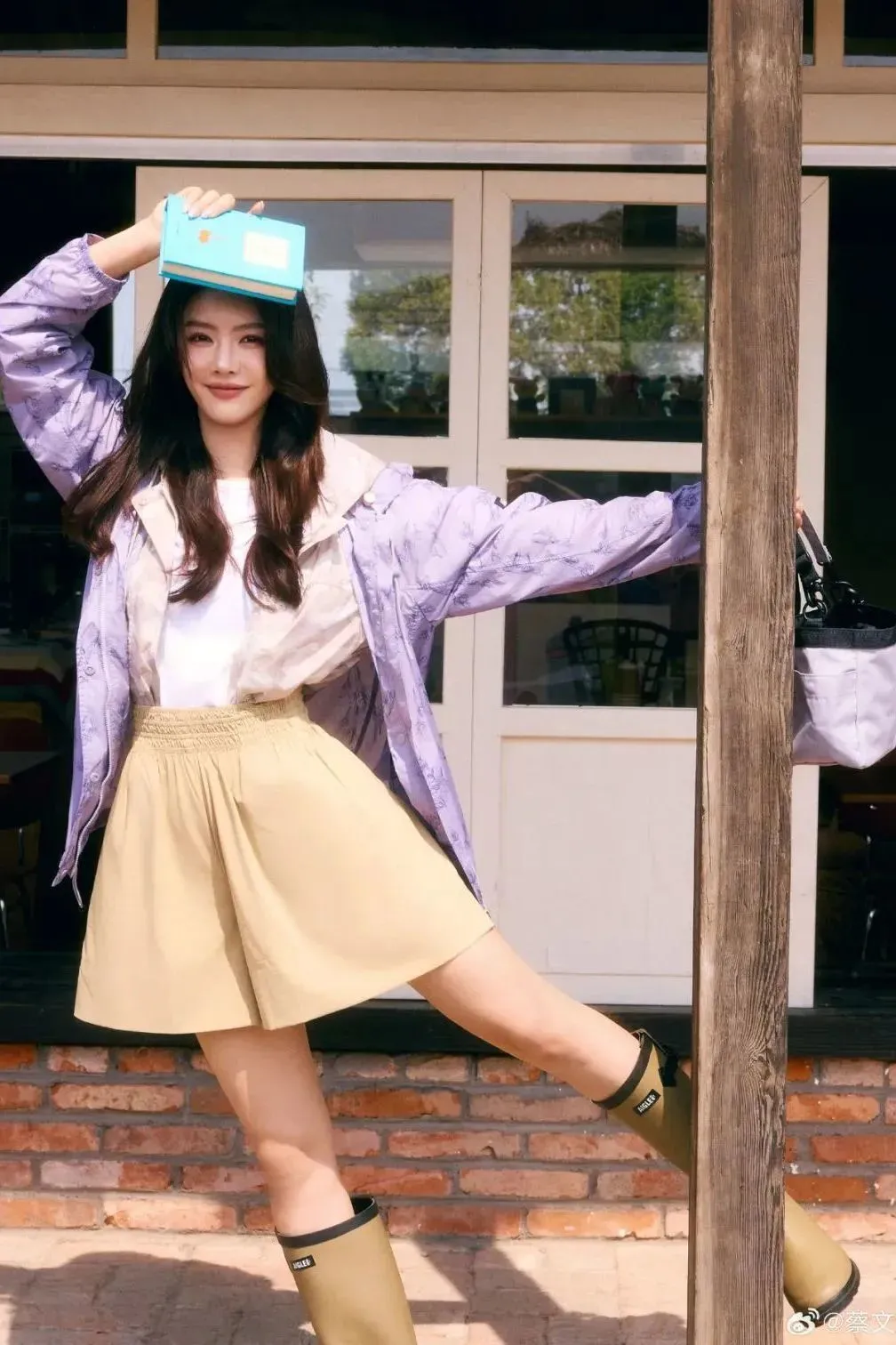 虽然有雨靴助力,但雨季在选择下装的时候,还是要减少一些与雨水接触的机会。那种拖地阔腿裤我们就可以直接放弃,不如改成短裤或短裙这种长度较短的单品,整个人也轻松利落很多。