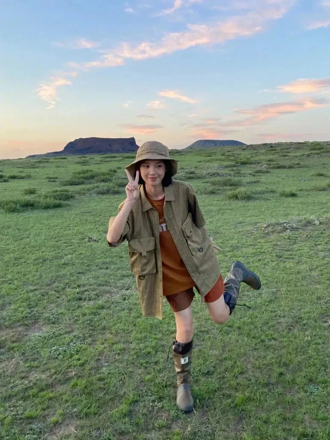 当然,融入户外、工装风的“降落伞裙”,也可以考虑一下。它一般会在设计上加入口袋、拉链、抽绳等户外功能性元素,色彩朴素,通常采用耐磨材质制成,看上去又酷又野,格外受个性辣妹的喜爱,也不容易被弄湿。
