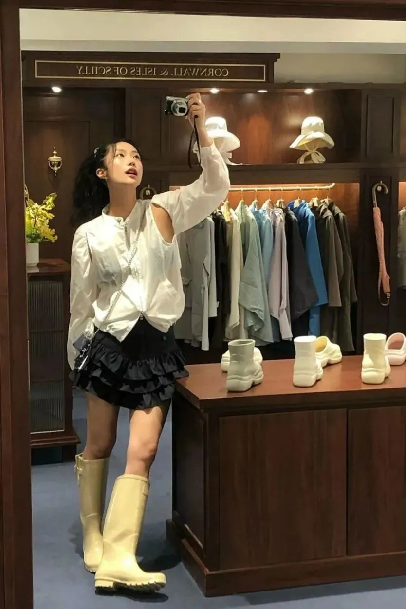 到了日常穿搭中,雨靴的可搭配性就更强了。它能让你轻松、优雅地从田园小院一路玩到大海沙滩。如今的这些“工具型单品”就算不是在雨季,也有了时髦的功能属性。