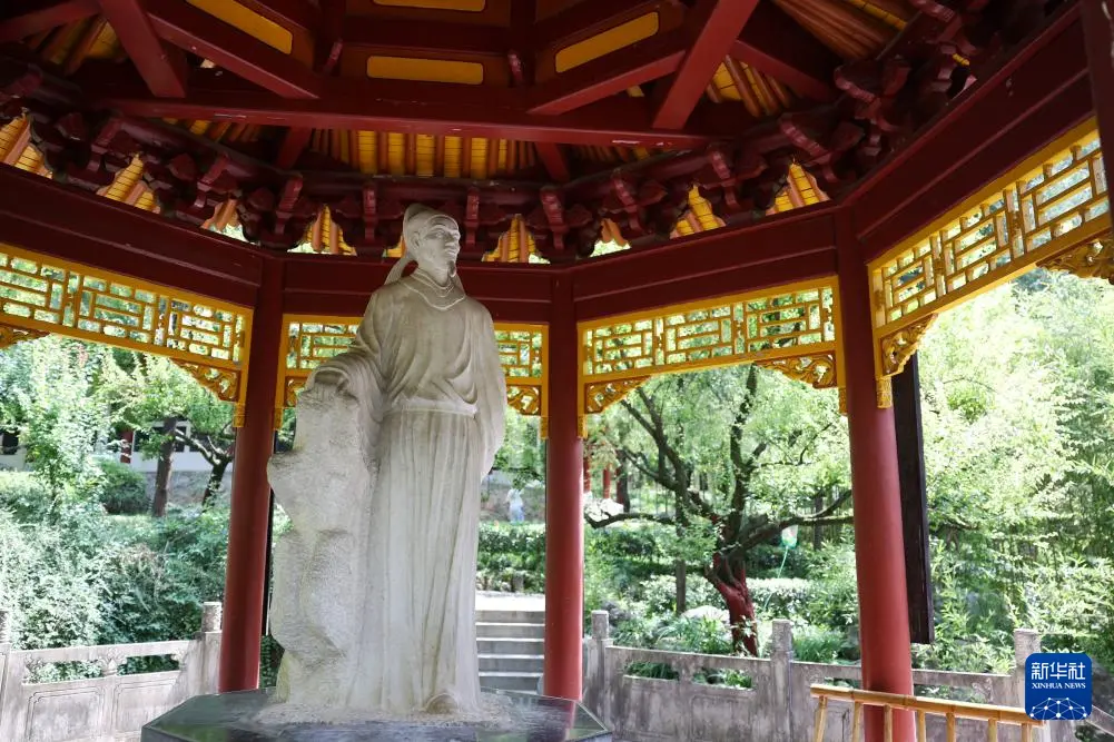 7月13日在成县杜甫草堂景区拍摄的杜甫雕像。