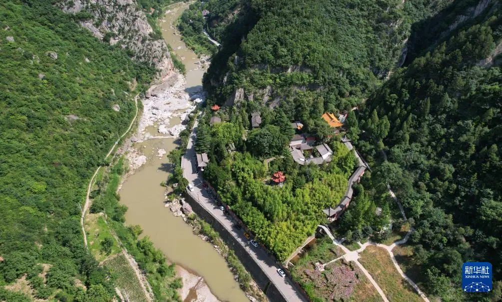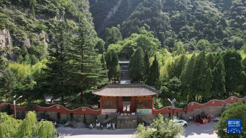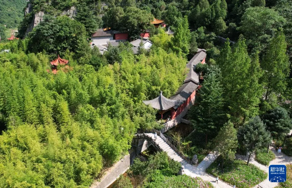 7月13日拍摄的飞龙峡口处的成县杜甫草堂景区(无人机照片)。