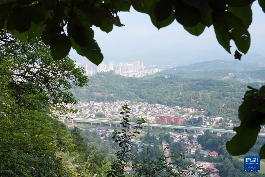 7月13日在杜甫草堂景区对面凤凰台上拍摄的成县县城景观,杜甫在《凤凰台》一诗中写有“亭亭凤凰台,北对西康州”,唐朝时曾在成县设置西康州。