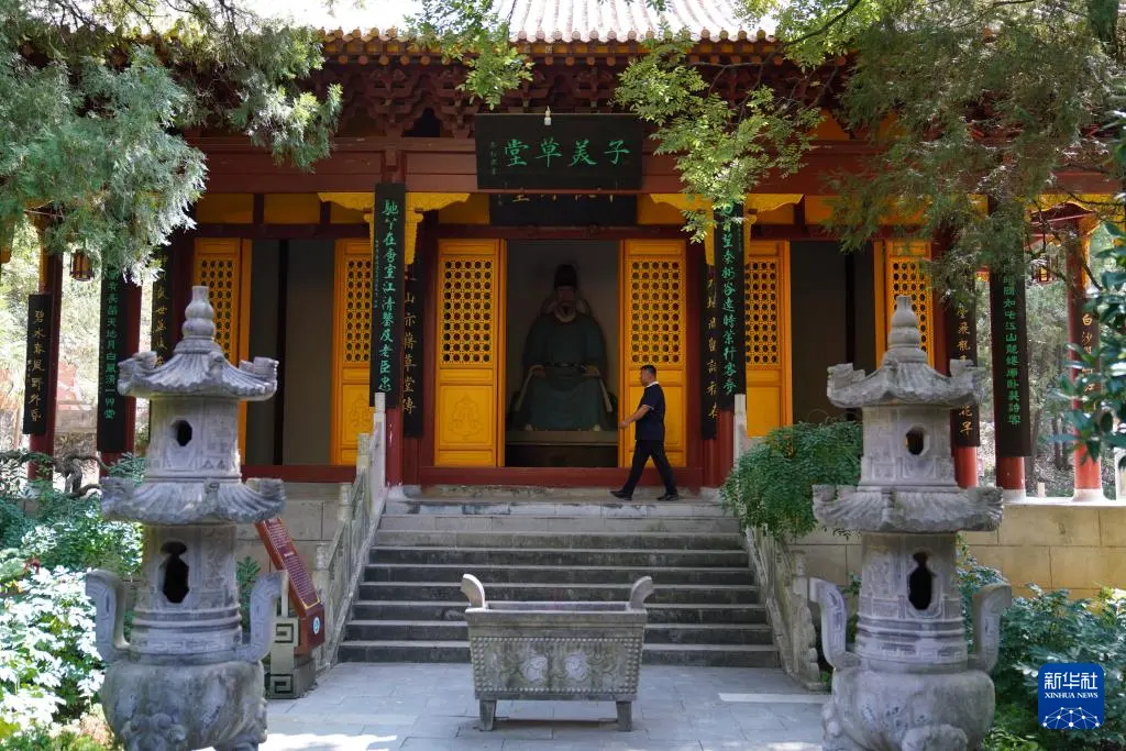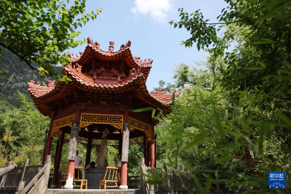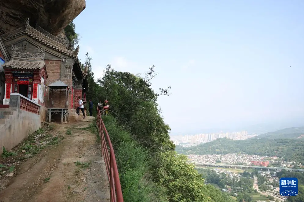 7月13日,游客在杜甫草堂景区对面的凤凰台上参观大云寺,山下是成县县城,杜甫在《凤凰台》一诗中写有“亭亭凤凰台,北对西康州”,唐朝时曾在成县设置西康州。