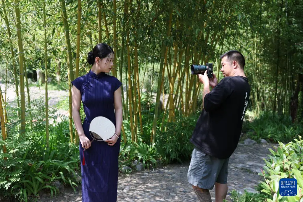 7月13日,游客在成县杜甫草堂景区参观游览。
