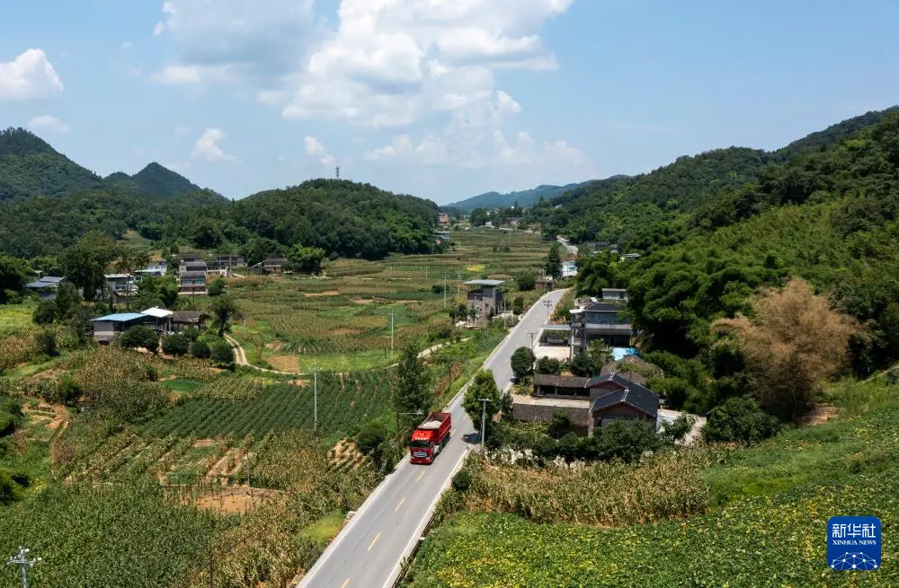 这是7月30日拍摄的重庆市涪陵区百胜镇乡村道路(无人机照片)。