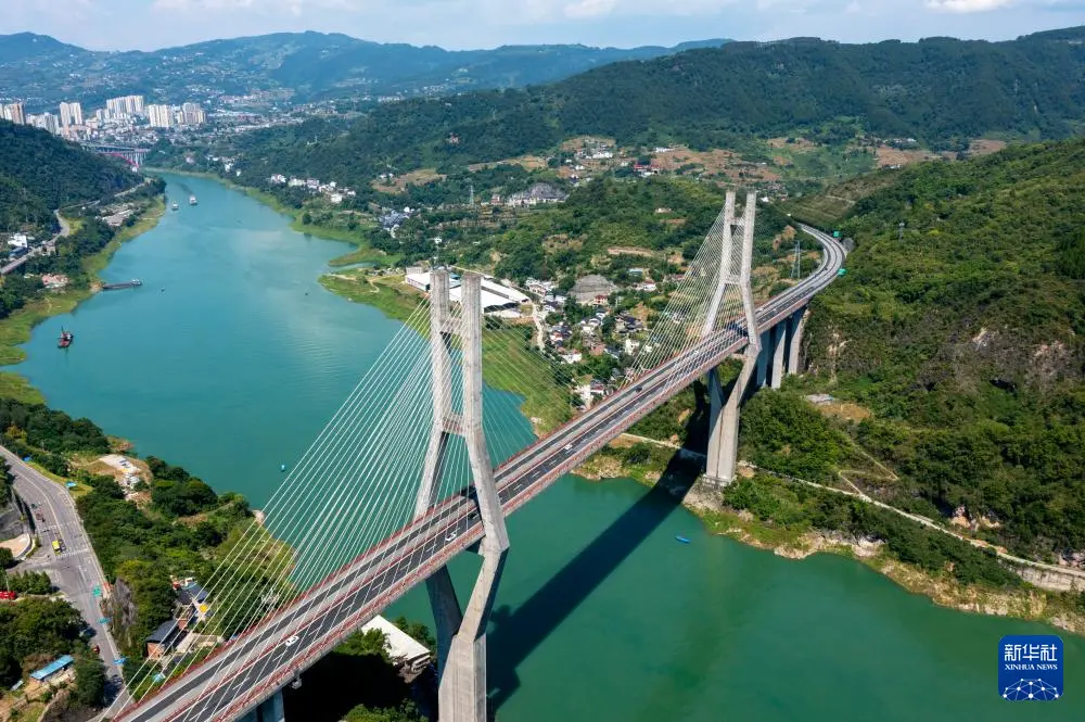 这是7月30日拍摄的重庆市涪陵区石渝高速荔枝乌江大桥(无人机照片)。