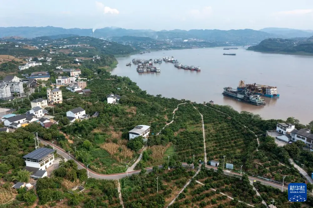 这是7月29日拍摄的重庆市涪陵区南沱镇睦和村长江江畔荔枝园景观(无人机照片)。