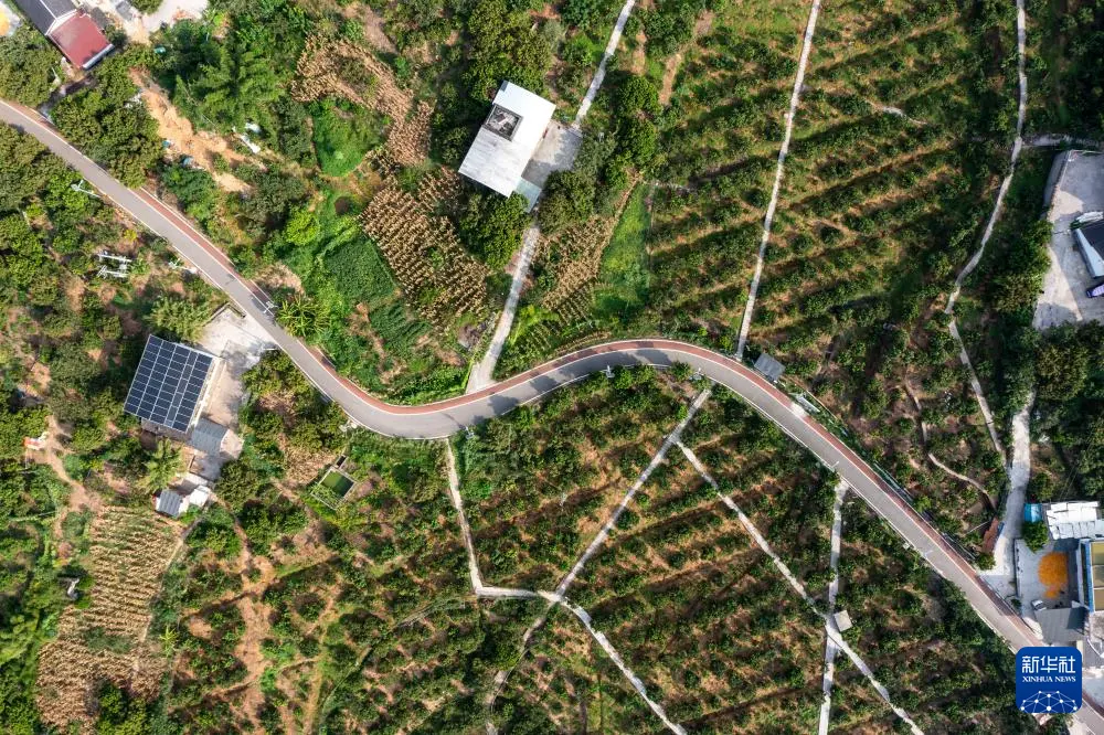 这是7月29日拍摄的重庆市涪陵区南沱镇睦和村荔枝园间的乡村道路(无人机照片)。