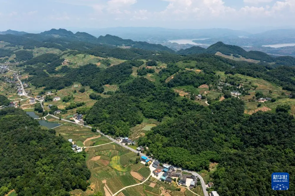 这是7月30日拍摄的重庆市涪陵区百胜镇乡村道路,这些道路连接着散布在群山中的村落与农田(无人机照片)。
