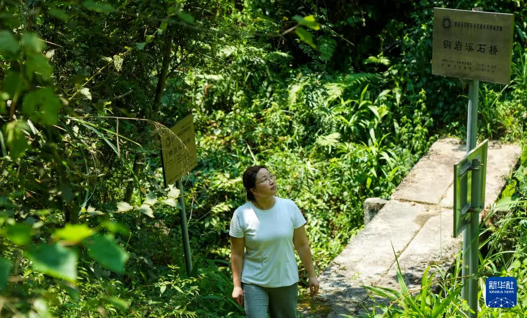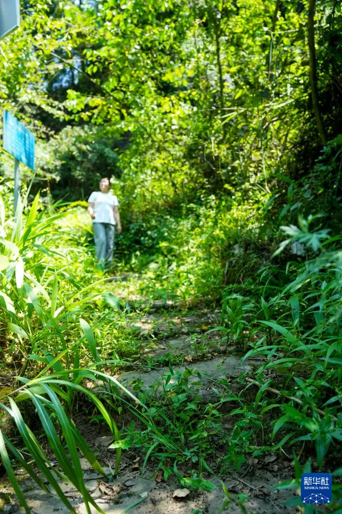 7月30日,重庆涪陵区百胜镇工作人员郭凤英对大山深处的古道遗址进行巡查。