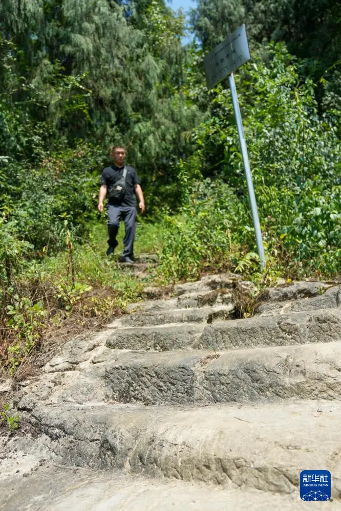 7月30日,重庆市涪陵区百胜镇工作人员周宗云对古道遗址进行巡查。