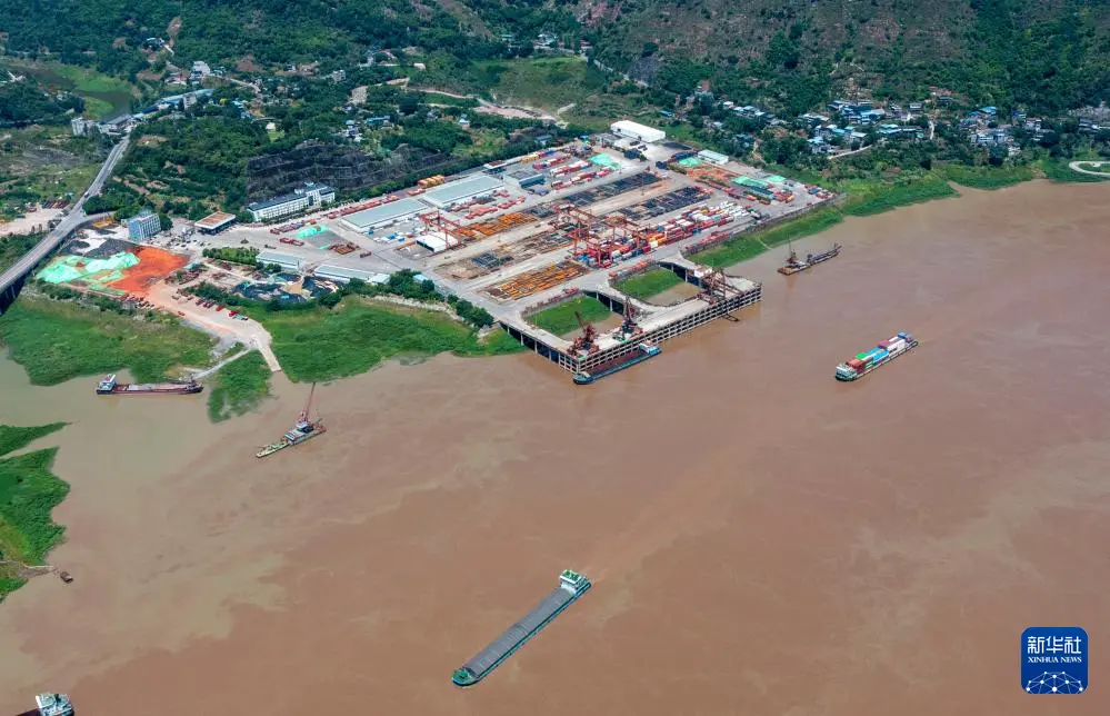 这是7月30日在重庆市涪陵区拍摄的长江边的黄旗港码头(无人机照片)。