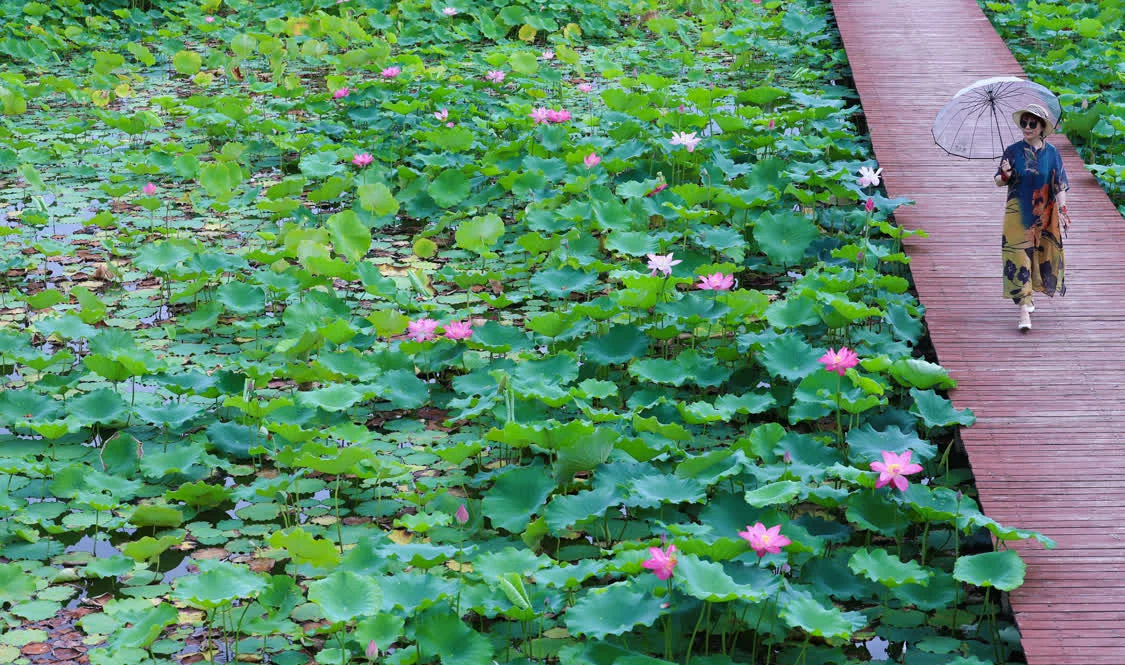 农历六月,也称“荷月”。此时荷花盛放,亭亭净植,不染淤泥,不畏骤雨,是极具“节令之美”的象征。“接天莲叶无穷碧,映日荷花别样红。”宋代诗人杨万里描写荷花的诗句流传千古。古人以荷消暑,以荷入诗,以赏荷寻得心灵的宁静。