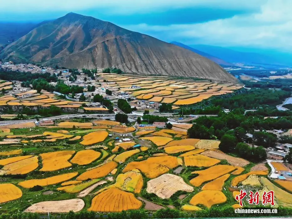 立秋时节,青海省东部农业区的海东市循化撒拉族自治县境内,金黄色的麦田与油菜花田勾勒出一幅田园“丰景”,庄稼人迎来一年一度的收割季。循化县位于黄河上游的河湟谷地,这里土地肥沃、气候宜人,是青海省农业收割最早的地区之一。图为层层梯田“丰景”迷人。魏立业 摄
