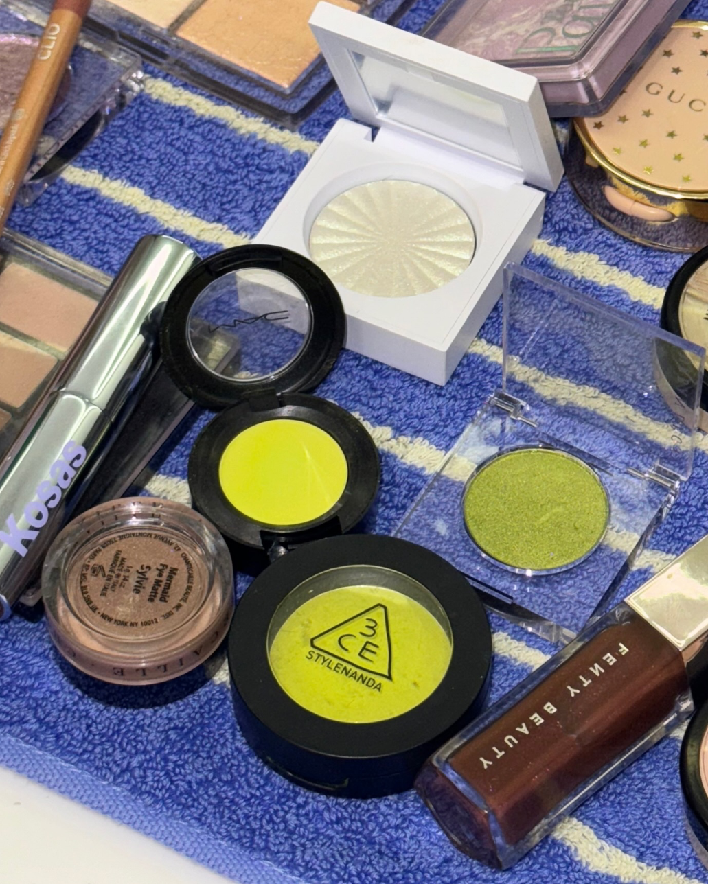 “可露丽棕”+低饱和彩色运用在妆容中不需要讲究配色逻辑,而且手边有什么彩妆盘就都能安排上。
