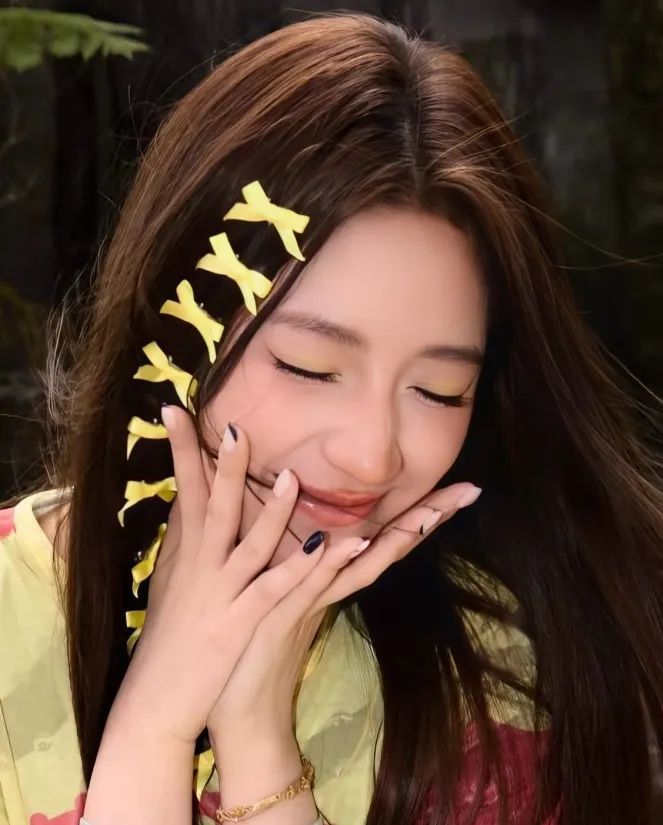 亮眼的奶油黄穿搭容易成妆难,但用可露丽配色逻辑就问题不大。欧阳娣娣同样以焦糖棕色塑造眼眶轮廓,让奶油黄只点缀于眼皮正中央区域,再以浓密的睫毛给双眼提神,就不怕属于浅色的奶油黄让眼睛显得肿泡无神了。