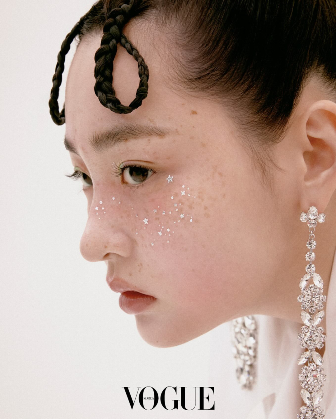 另外雀斑的点缀更是神来之笔,当面部留白越少,则五官更聚焦,自然上镜效果随之升级。化妆师杨单给娜娜点雀斑的工具也很朴实无华——染眉膏。
