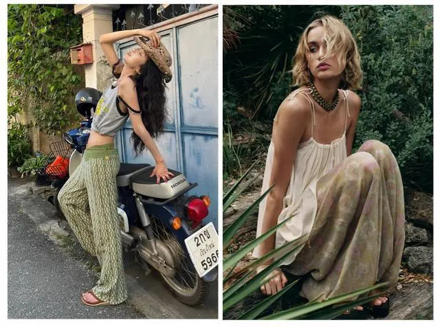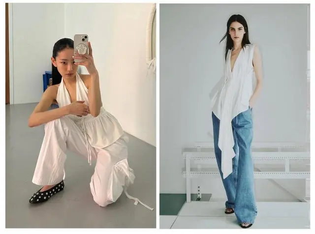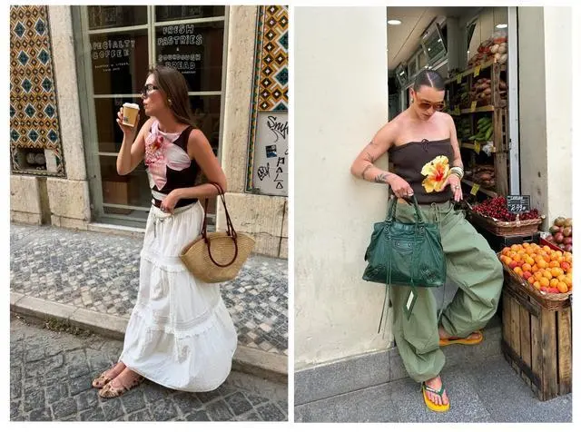 “少即是多”在热带穿搭中同样适用。一件简单的吊带上衣或抹胸上衣,以单朵花图案点缀,便能成为视觉焦点,下装搭配白色廓形半裙或一些中性色裤装,可以衬托印花的鲜活,让整体造型繁简有度。