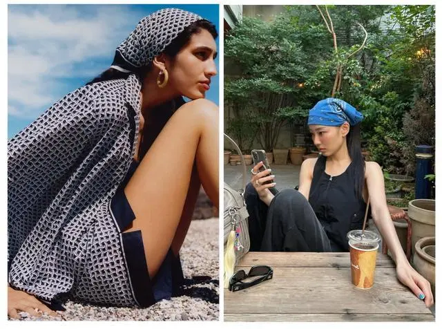 热门单品头巾,无论是系在发间作为发带、点缀颈部,还是缠绕于手腕或包袋上,都能为整体增添个性十足的时髦亮点,它可以与服装成套搭配,即便是全身All Black的造型,印花头巾也能立刻塑造出个性的造型。
